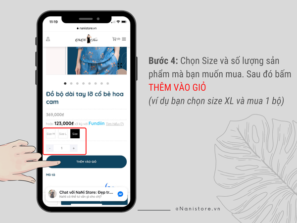 Bước 4: Chọn size & số lượng sản phầm mà chị muốn mua, bấm vào thêm giỏ hàng