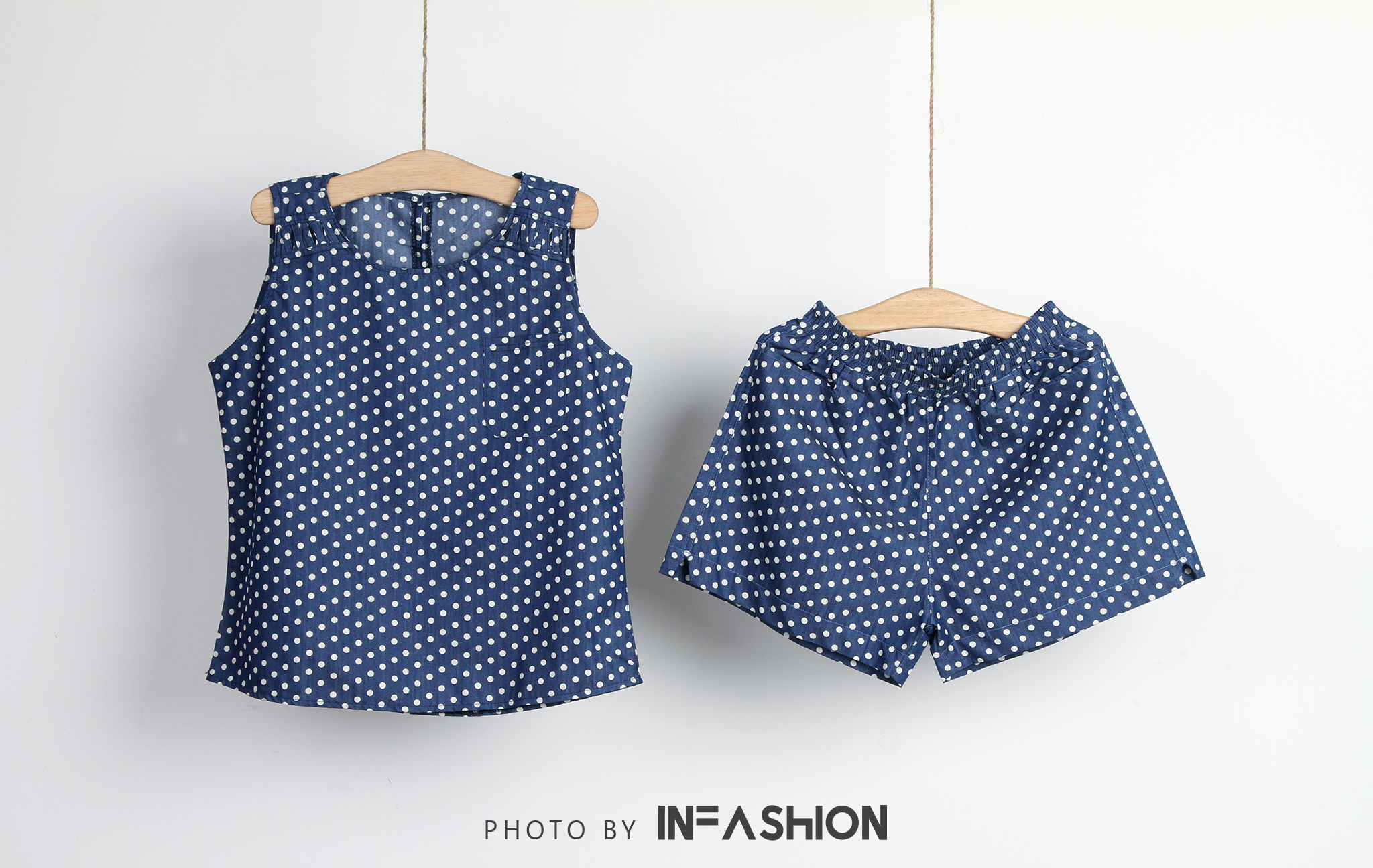 Đồ bộ đùi áo thun có viền cổ quần hoa mùa xuân