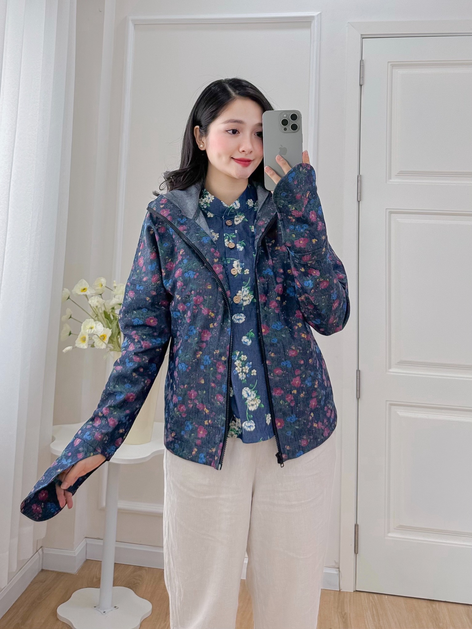 1. Đặc điểm nổi bật Áo khoác denim hoạ tiết hoa sam