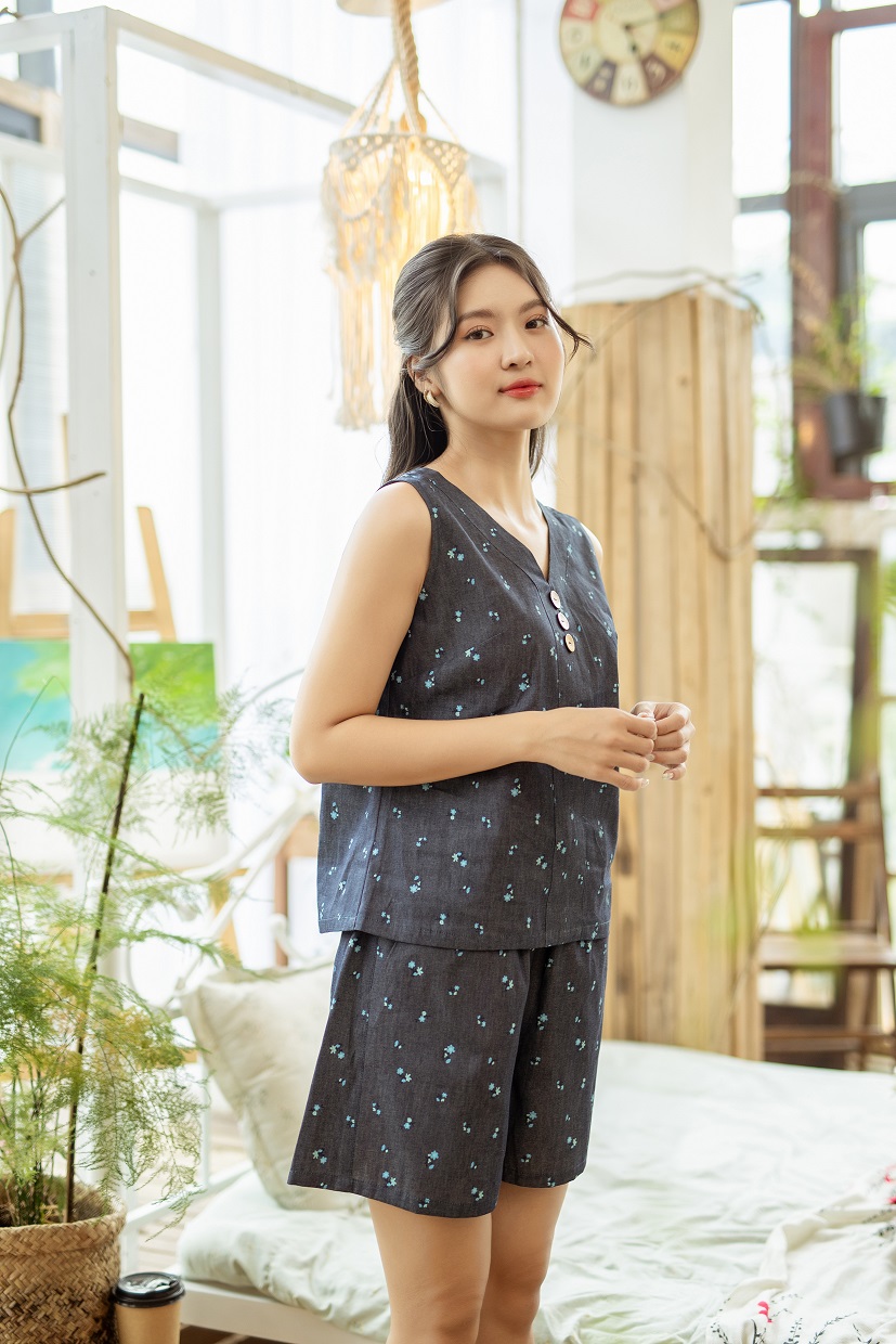 2. Mô tả chi tiết Đồ bộ đùi thiết kế 3 nút hoa nhí xanh