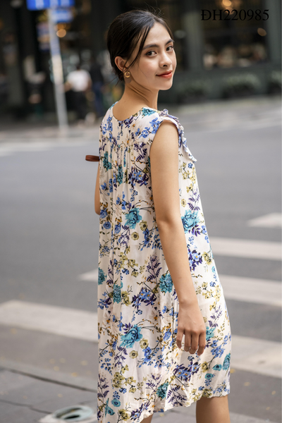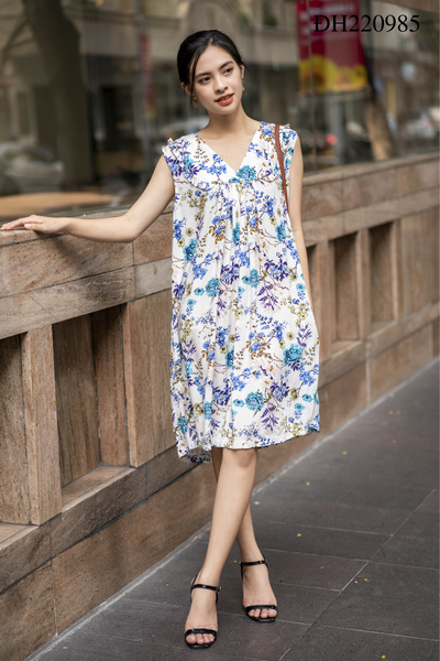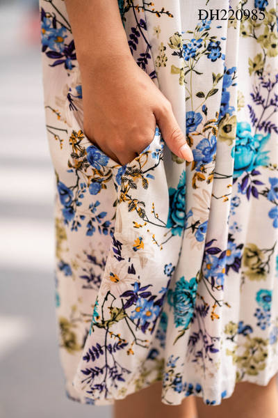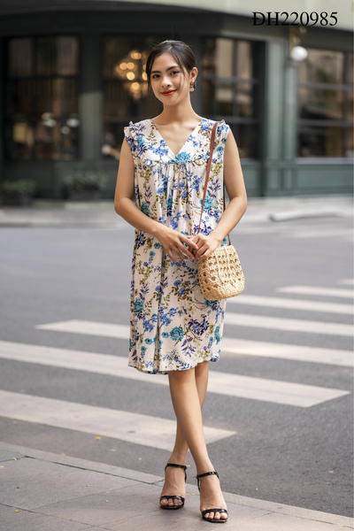2. Mô tả sản phẩm Đầm thời trang cổ V bèo hoa xanh: