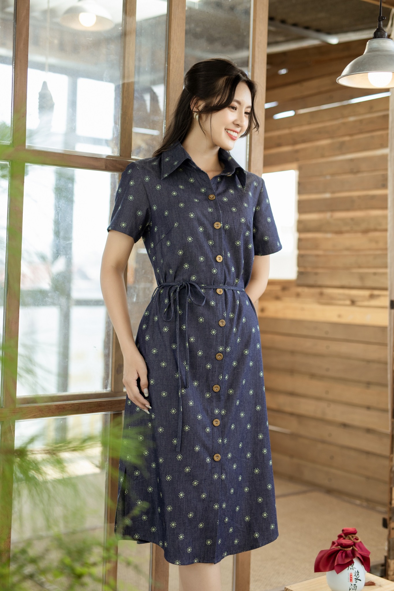 Đầm sơ mi có tay họa tiết hoa mặt trời Nani Store được thiết kế với kiểu dáng cách điệu độc đáo vừa giữ được tính thanh lịch cùng sự nữ tính, đơn giản nhưng tinh tế, phía trước phối dây cột tiện dụng khi mặc, tạo điểm nhấn đầy ấn tượng và phong cách. Đường may đẹp, tỉ mỉ trong từng chi tiết tạo sự an tâm tuyệt đối cho bạn gái khi sử dụng sản phẩm. lôi cuốn, trẻ trung giúp phái đẹp luôn năng động, tự tin khi đi làm, đi học, đi chơi