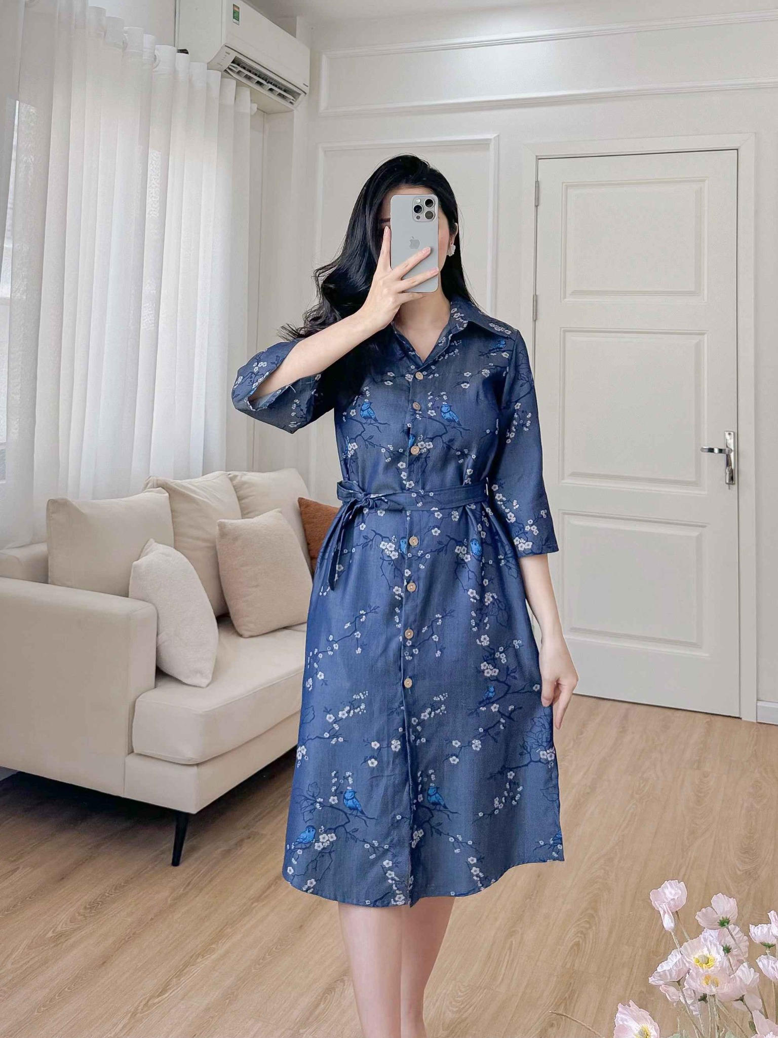 5. Lưu ý cho sản phẩm Đầm sơ mi tay lỡ họa tiết chim én mùa xuân