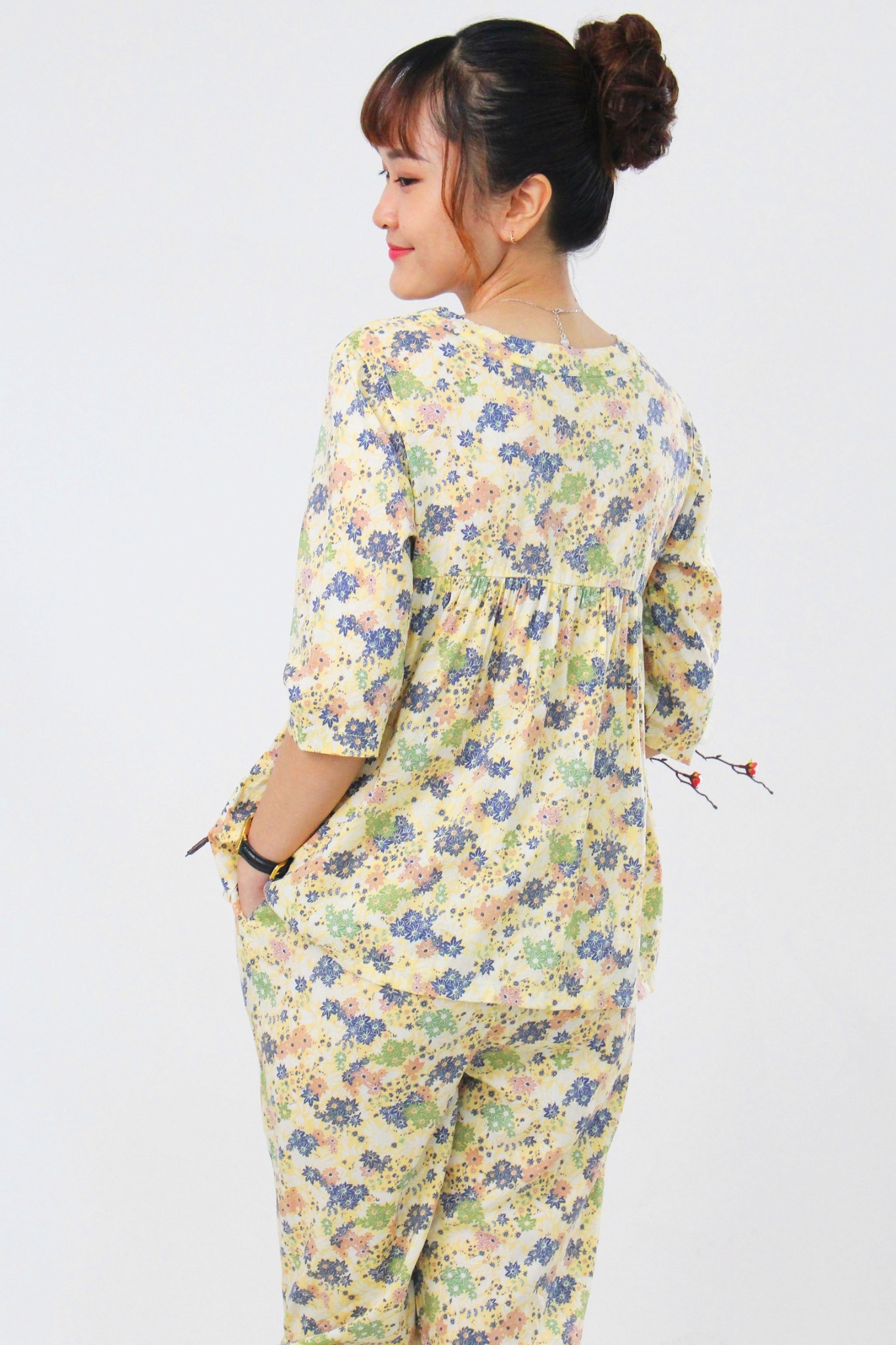 2. Mô tả chi tiết Đồ bộ dài baby doll tay lỡ hoa vàng