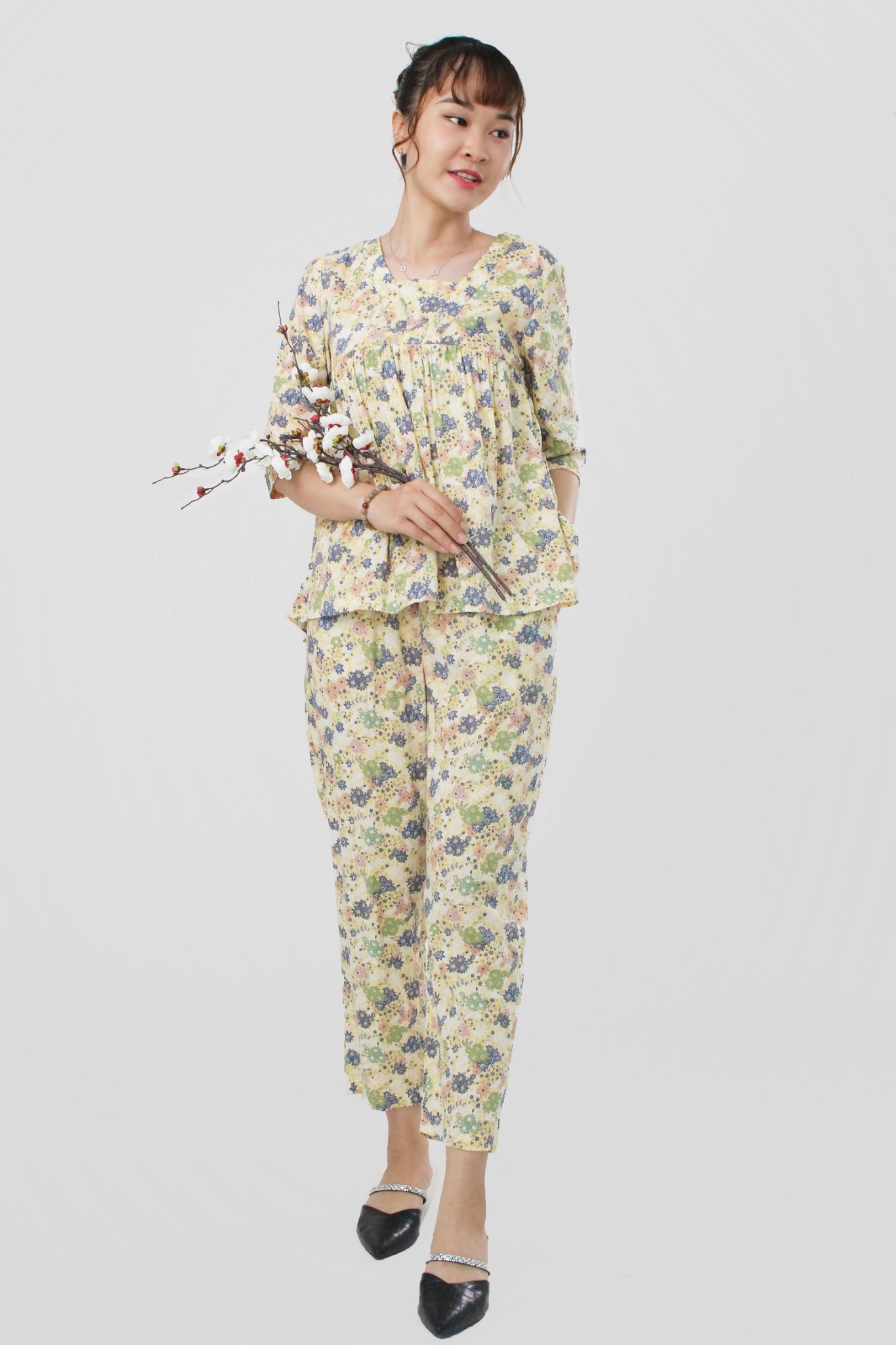 1. Đặc điểm nổi bật Đồ bộ dài baby doll tay lỡ hoa vàng