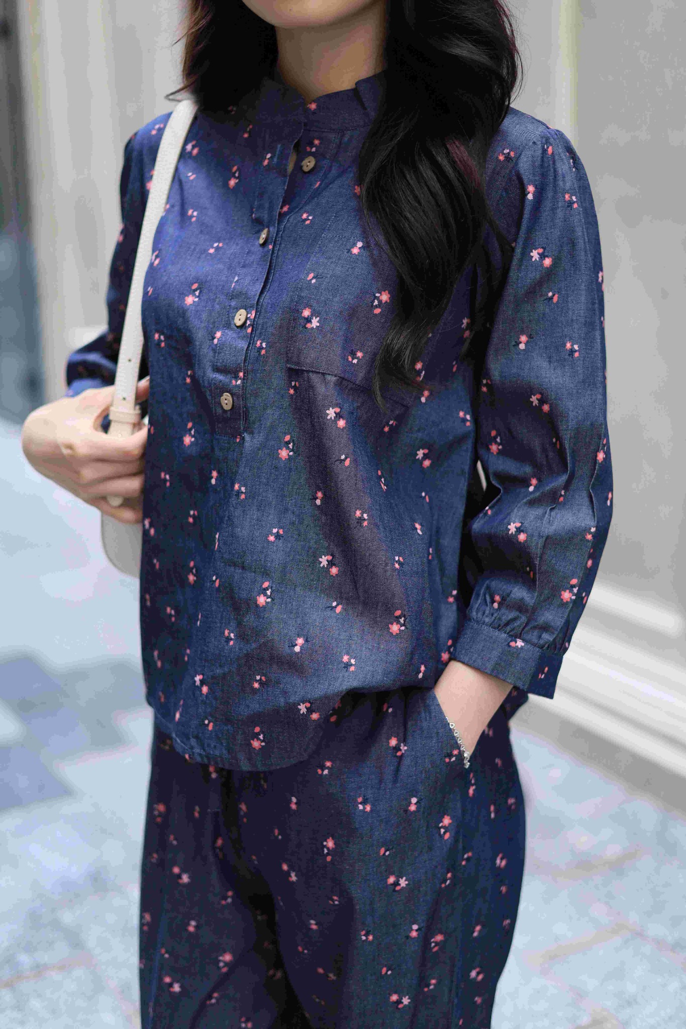 Đồ bộ dài thiết kế cổ tàu hoa nhí hồng NaNi Store là thiết kế độc quyền, form dáng chuẩn, không đụng hàng. Đồ bộ mặc nhà thiết kế tiện lợi 2 trong 1, vừa mặc nhà, vừa dạo phố. Vải denim, ít nhăn, thích hợp cho các chị ngại ủi. Phom giấu bụng rất tốt, vải mặc nhà không cần mặc áo bra. Đủ size từ 43-75kg