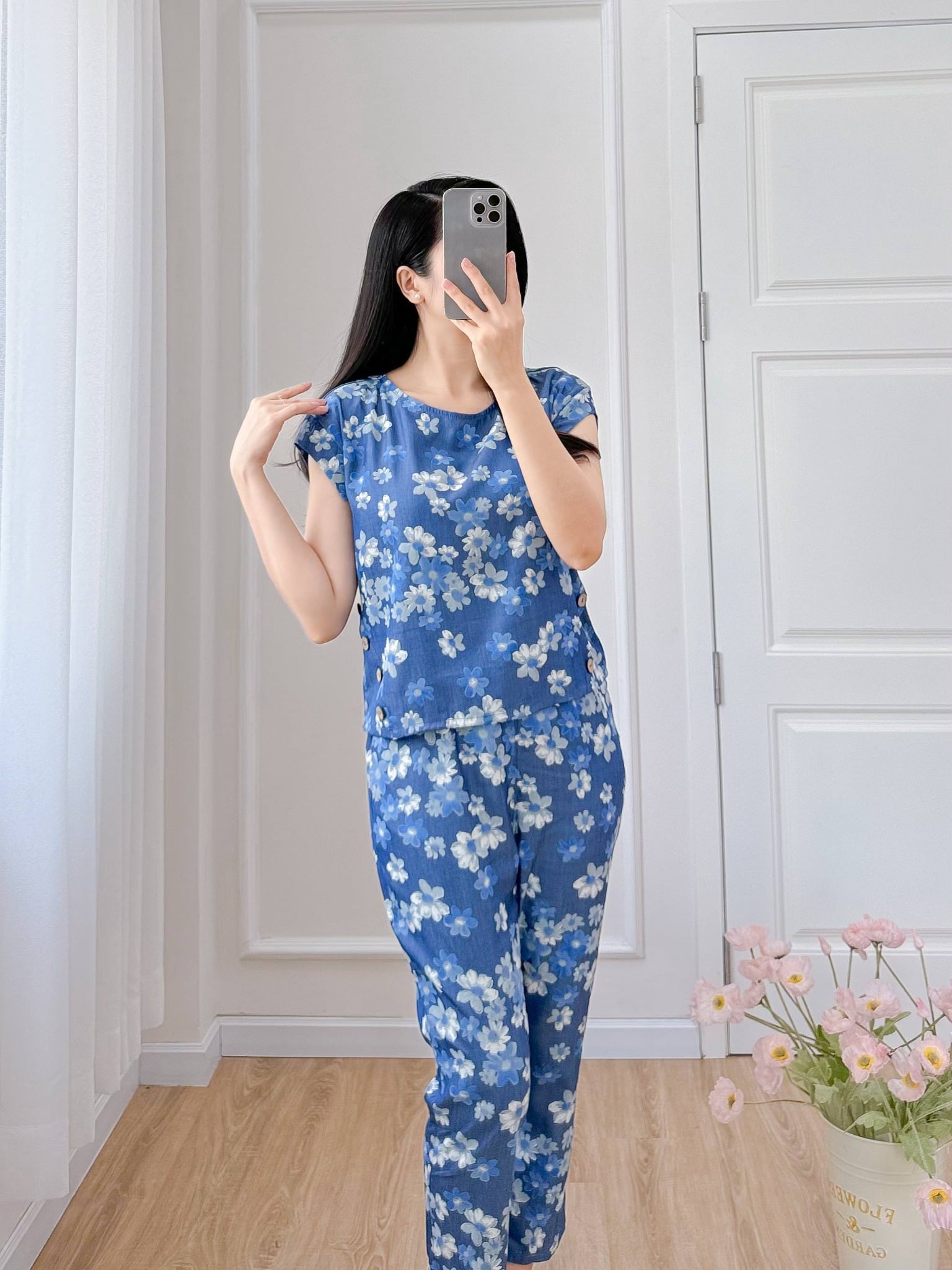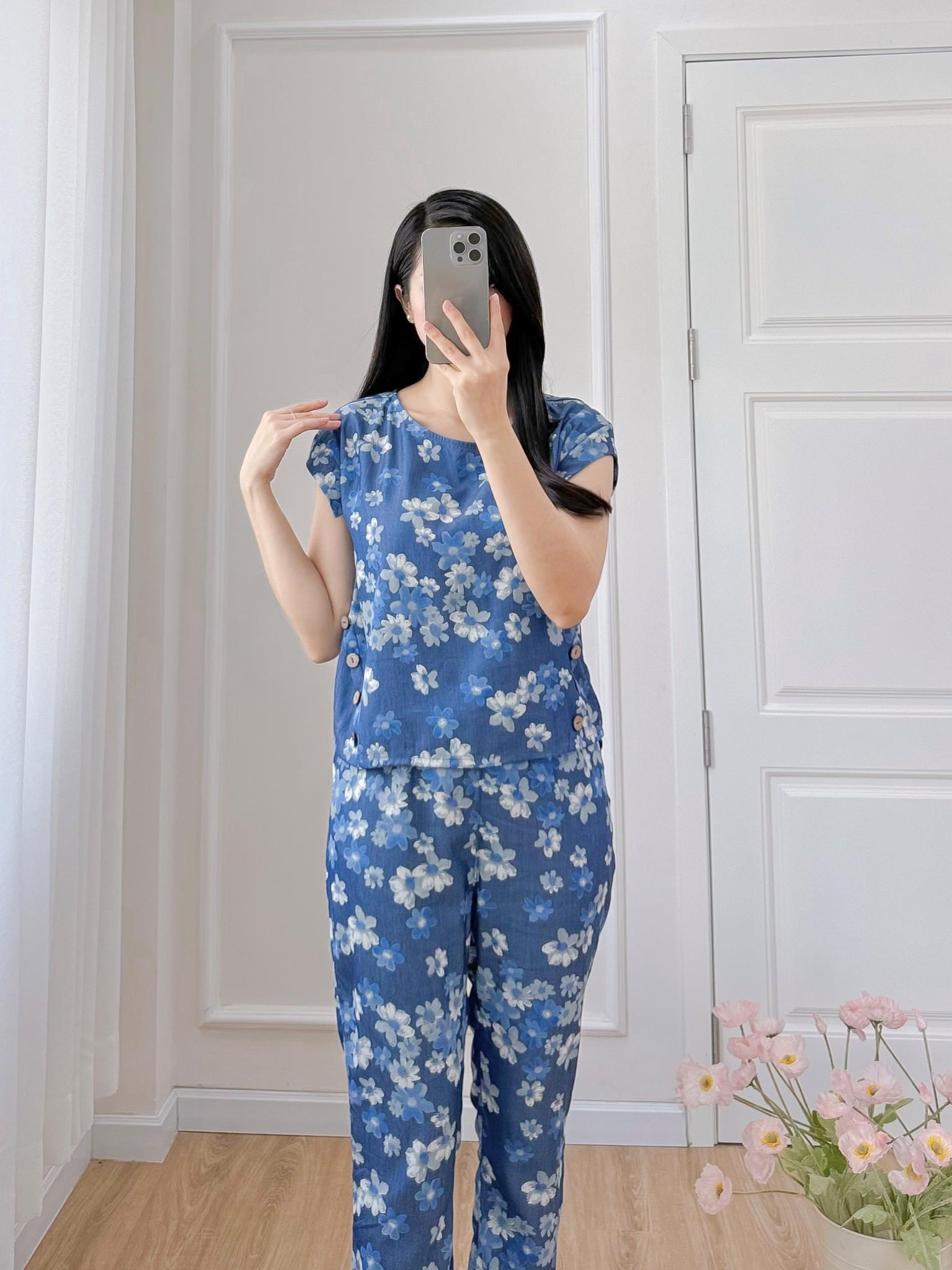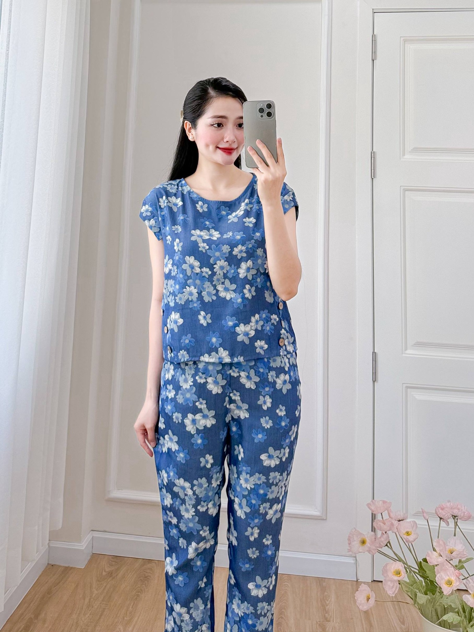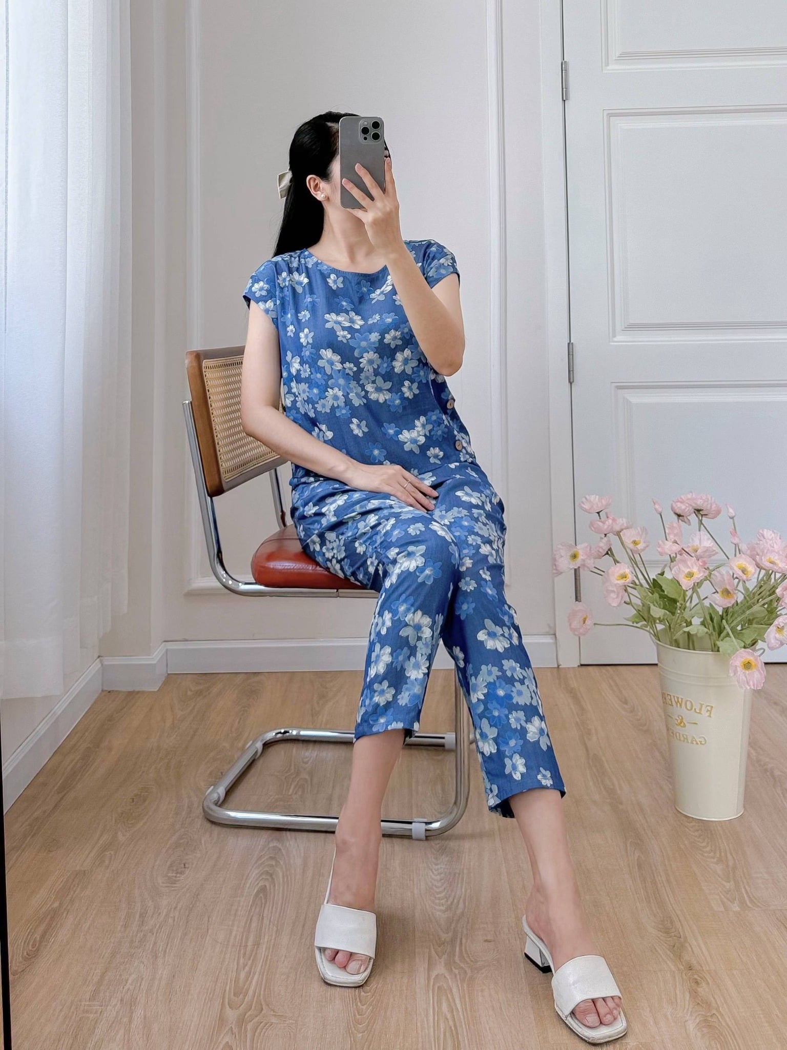 Đồ bộ dài có tay cánh tiên hoa tầm xuân Nani Store là thiết kế độc quyền, form dáng chuẩn, không đụng hàng. Đồ bộ mặc nhà thiết kế tiện lợi 2 trong 1, vừa mặc nhà, vừa dạo phố. Vải cotton giả jeans giặt máy thoải mái, ít nhăn, thích hợp cho các chị ngại ủi. Phom giấu bụng rất tốt, vải mặc nhà không cần mặc áo bra. Đủ size từ 43-75kg.