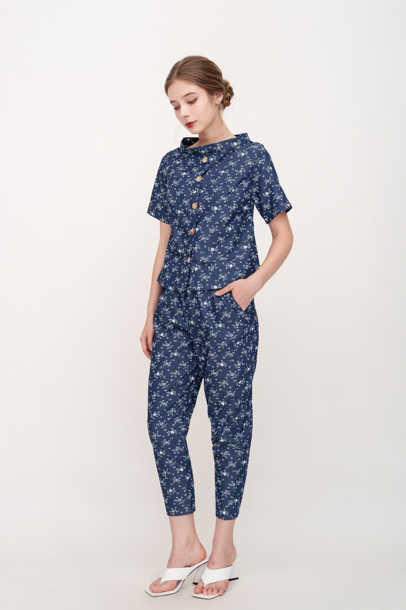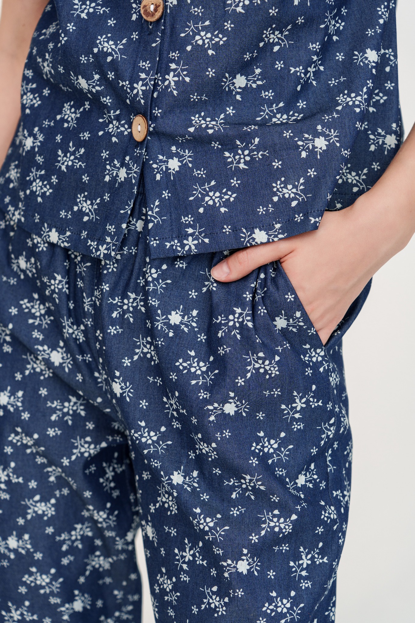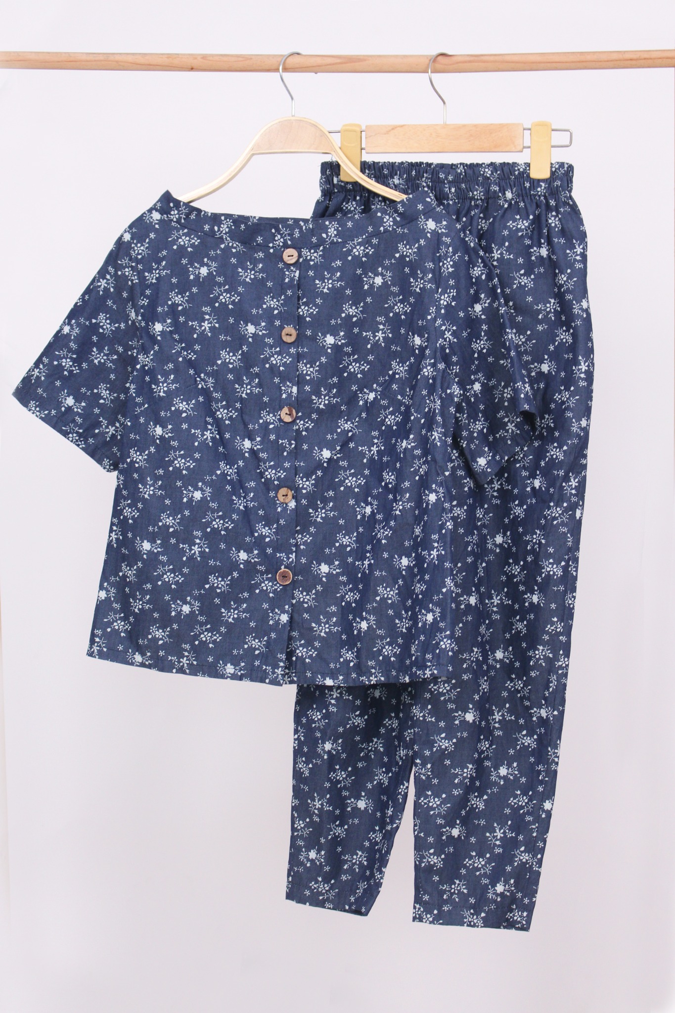 2. Mô tả chi tiết Đồ bộ dài có tay cổ thuyền hoa nhí