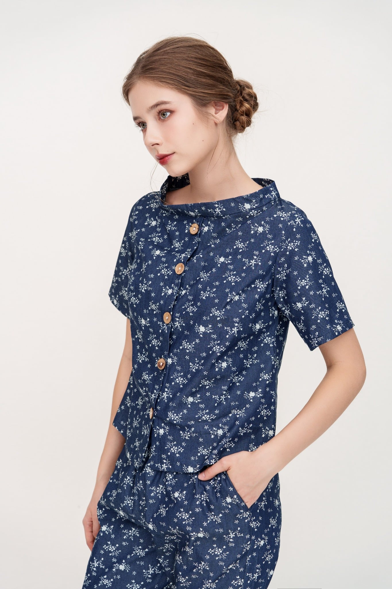 Đồ bộ dài có tay cổ thuyền hoa nhí Nani Store là thiết kế độc quyền, form dáng chuẩn, không đụng hàng. Đồ bộ mặc nhà thiết kế tiện lợi 2 trong 1, vừa mặc nhà, vừa dạo phố. Vải cotton giả jeans giặt máy thoải mái, ít nhăn, thích hợp cho các chị ngại ủi. Phom dấu bụng rất tốt, vải mặc nhà không cần mặc áo bra. Đủ size từ 43-75kg