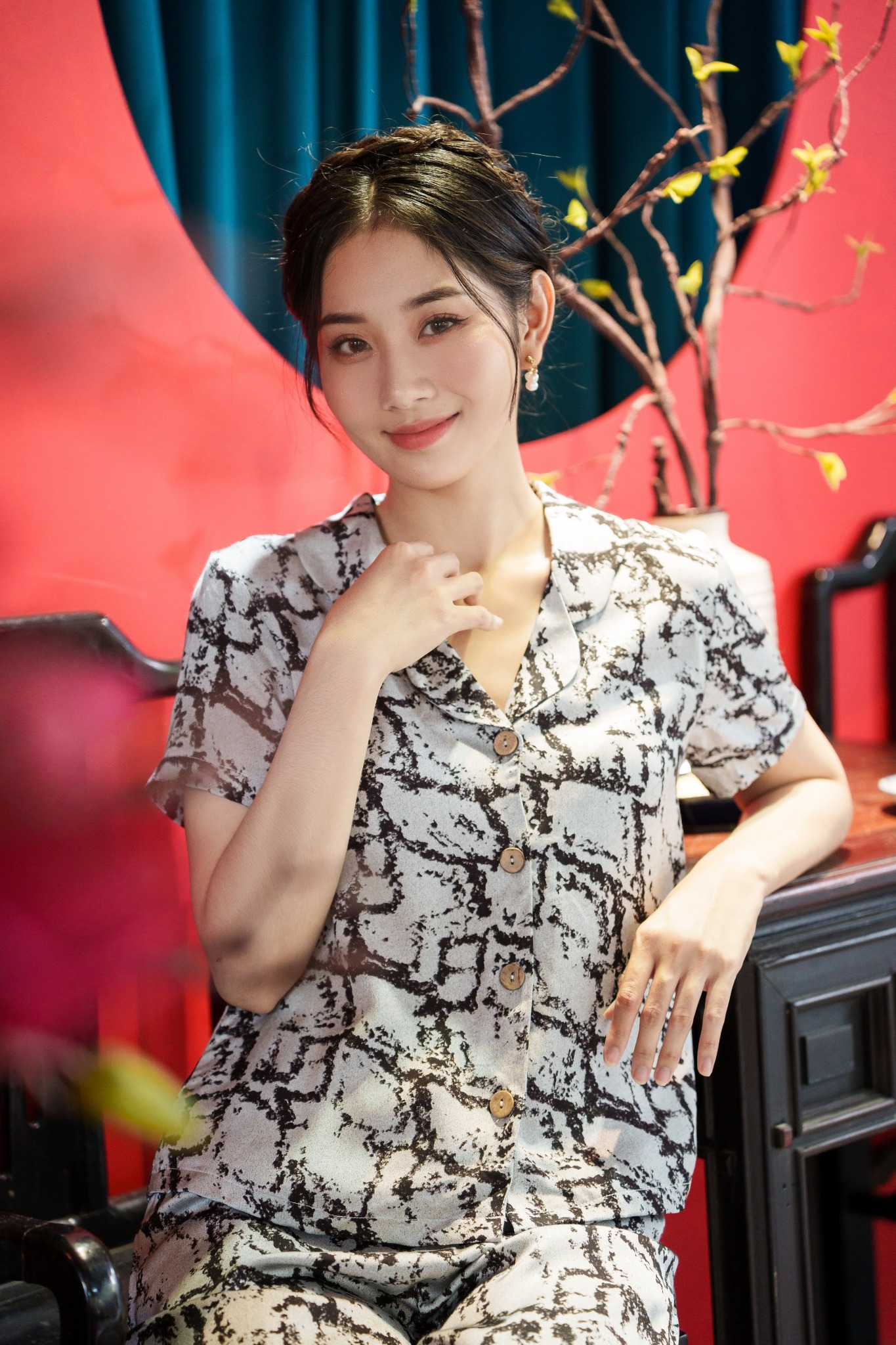 2. Mô tả chi tiết Đồ bộ dài có tay đá cẩm thạch xám