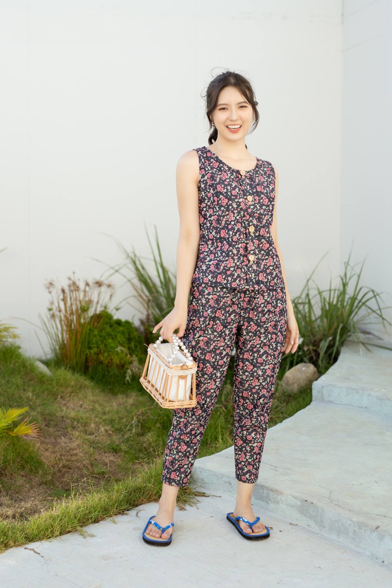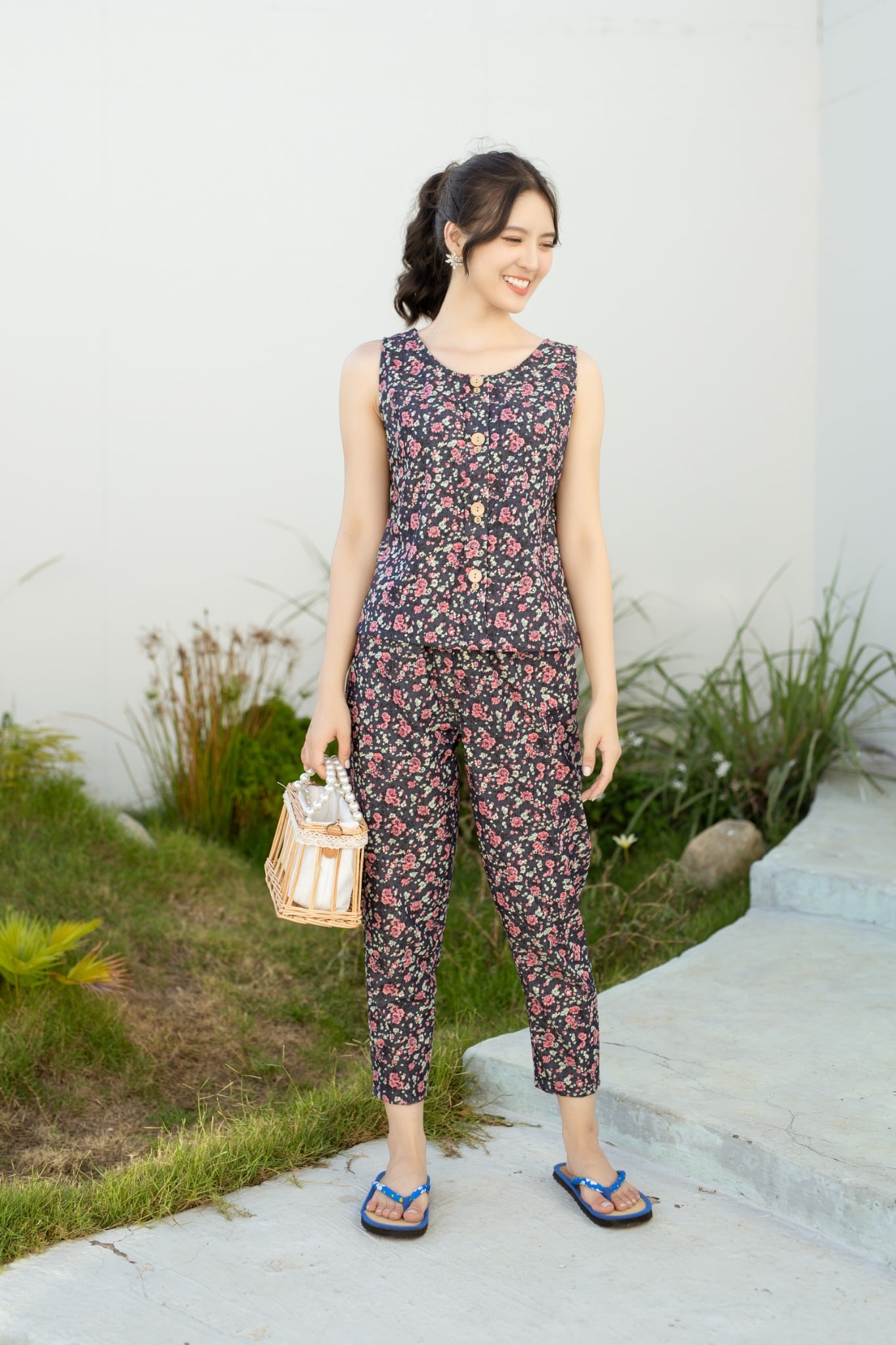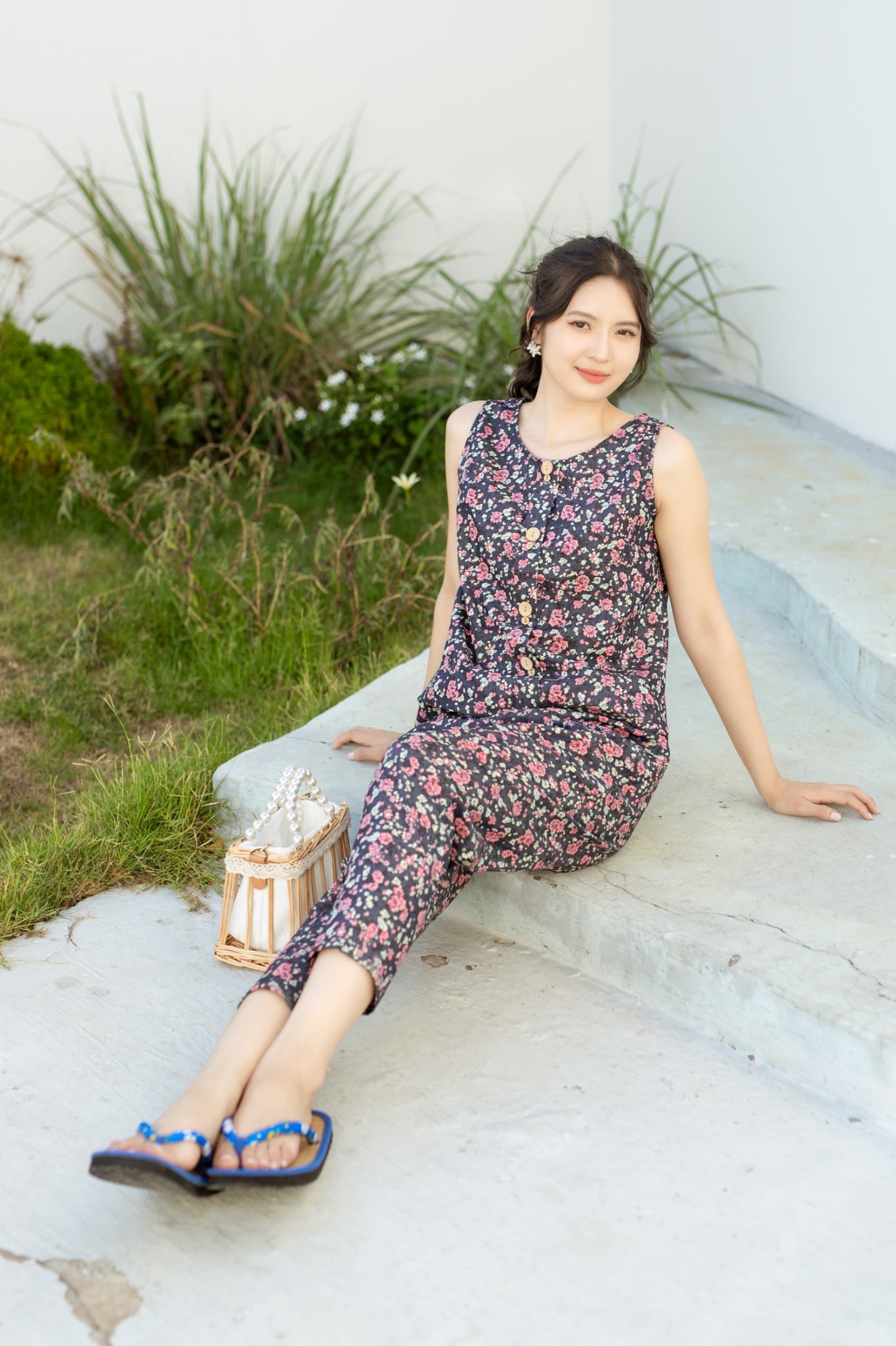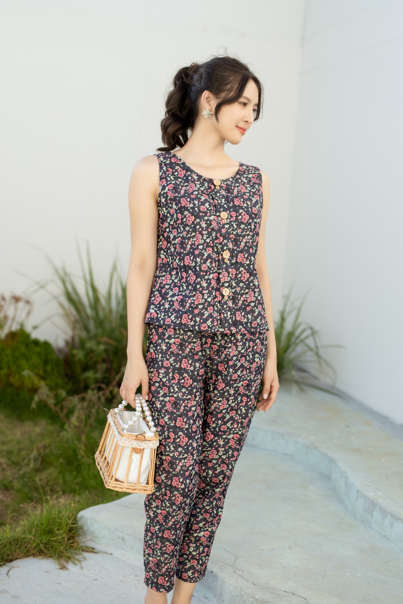 1. Đặc điểm nổi bật Đồ bộ dài không tay 8 nút hoa hồng