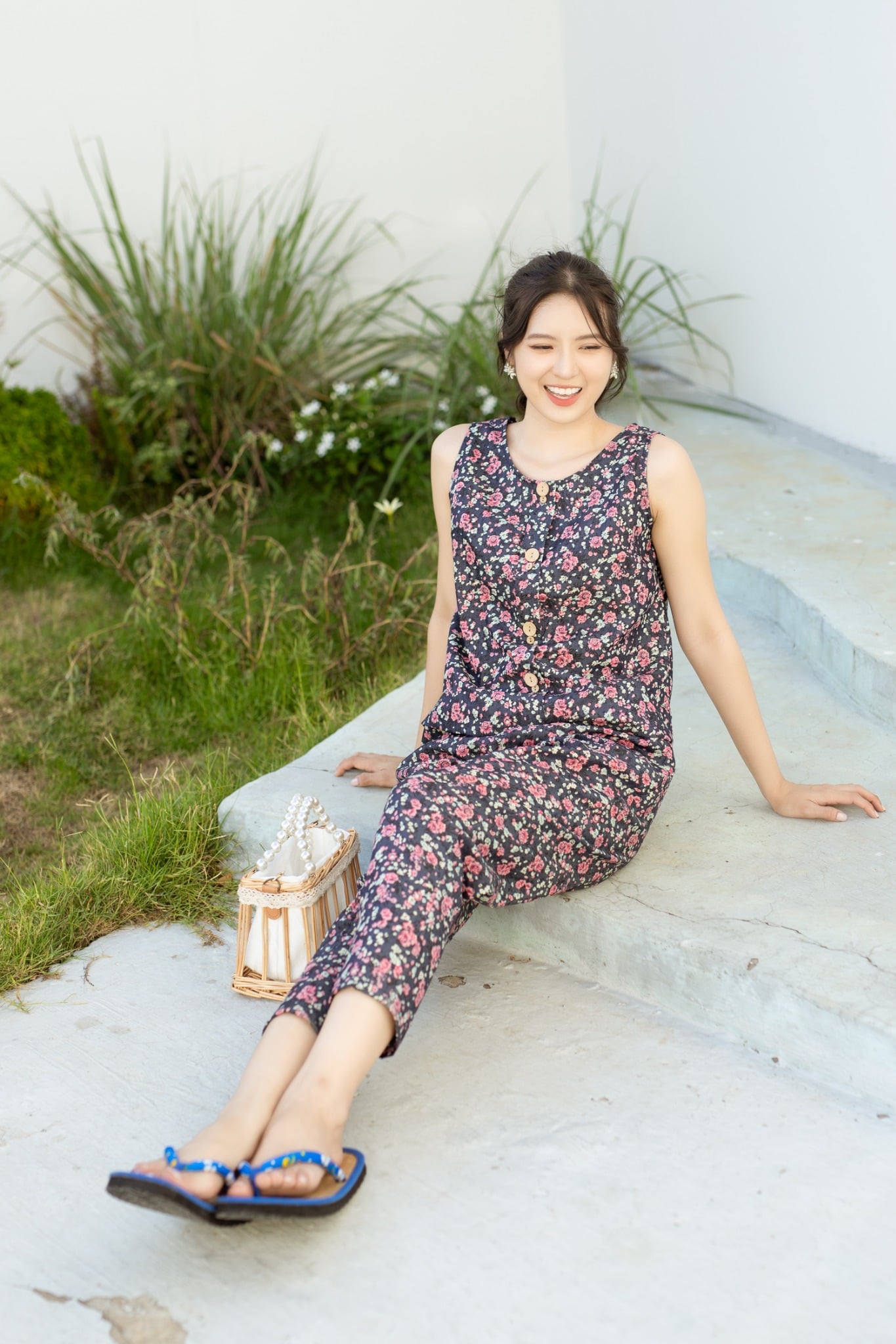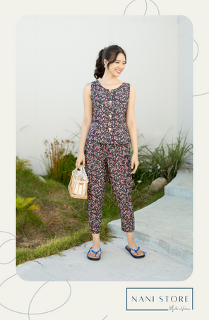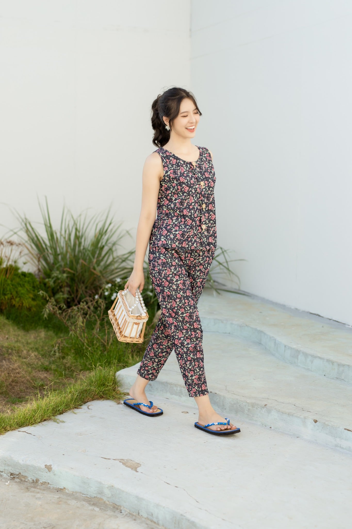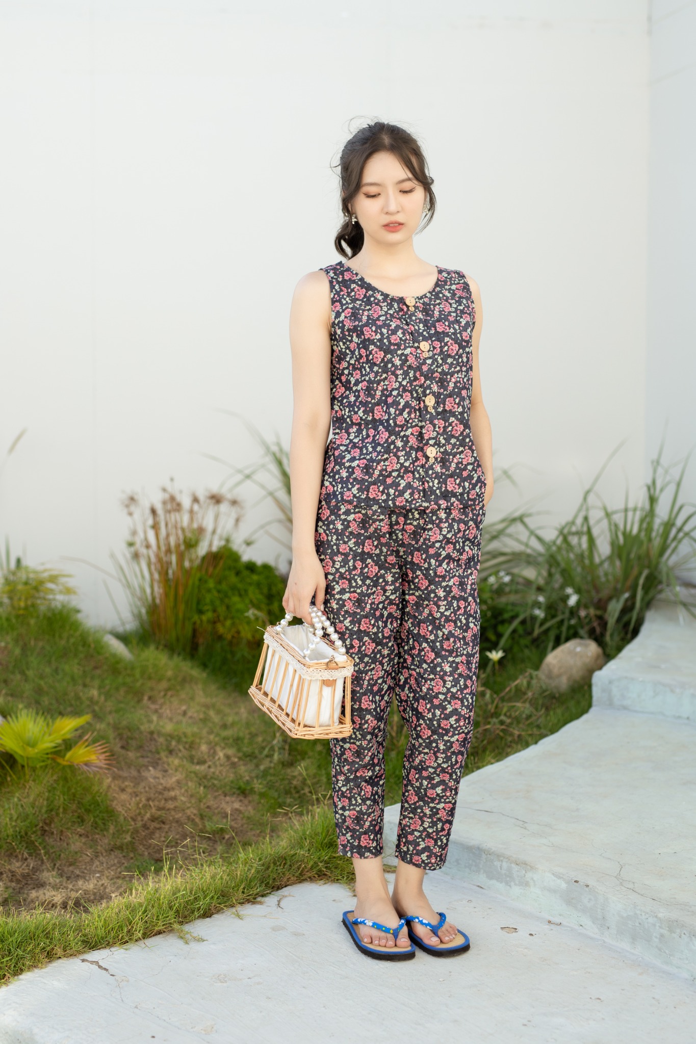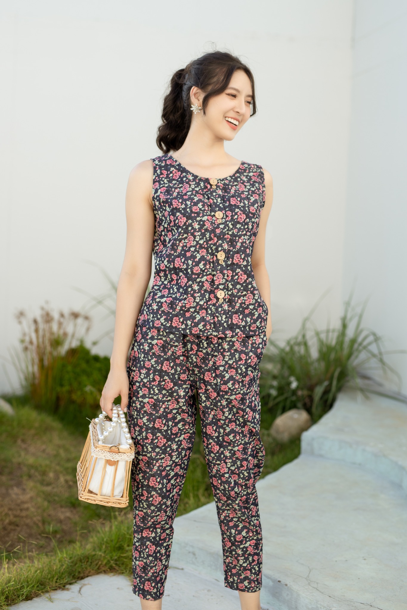 1. Đặc điểm nổi bật Đồ bộ dài không tay 8 nút hoa hồng
