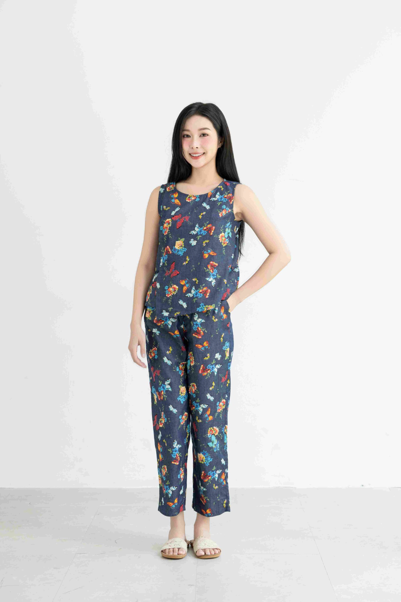 2. Mô tả chi tiết Đồ bộ dài không tay thiết kế vạt xéo hoa bướm