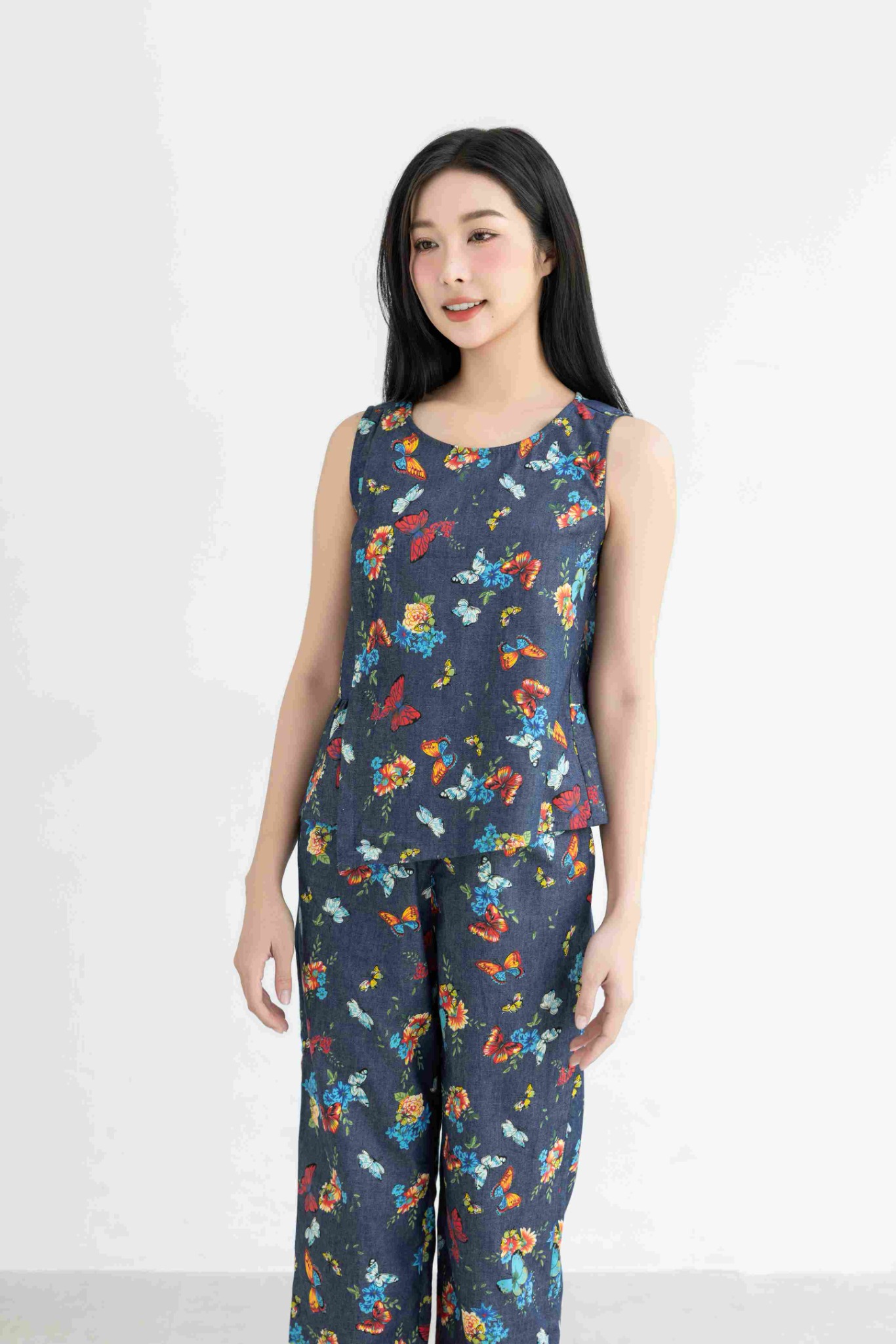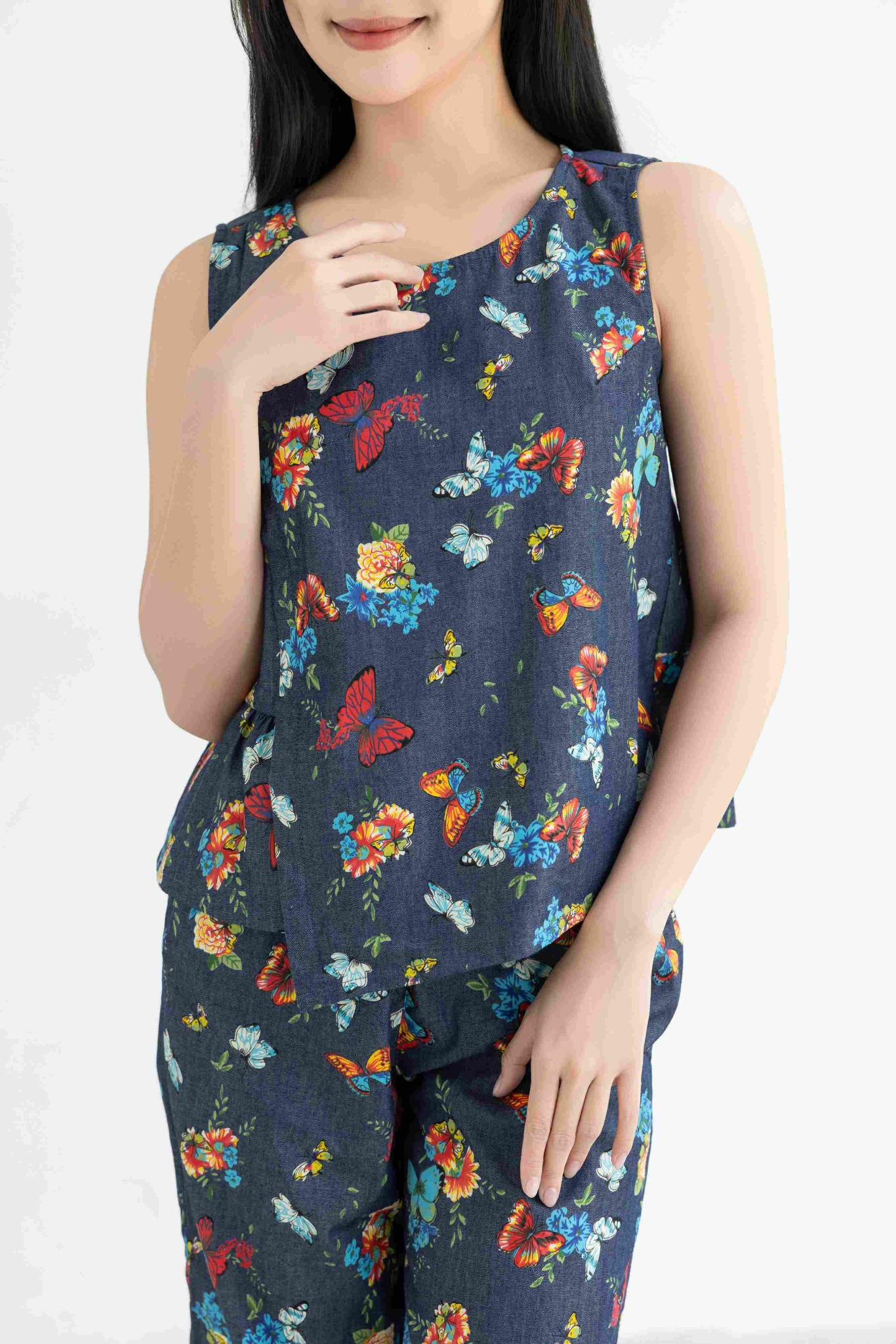 1. Đặc điểm nổi bật Đồ bộ dài không tay thiết kế vạt xéo hoa bướm