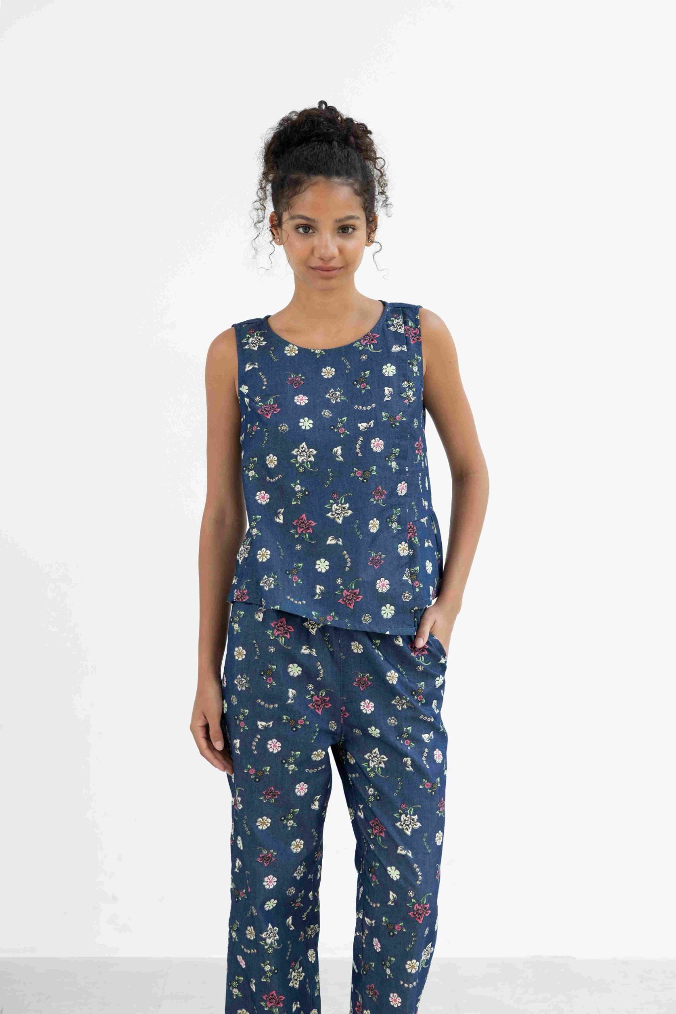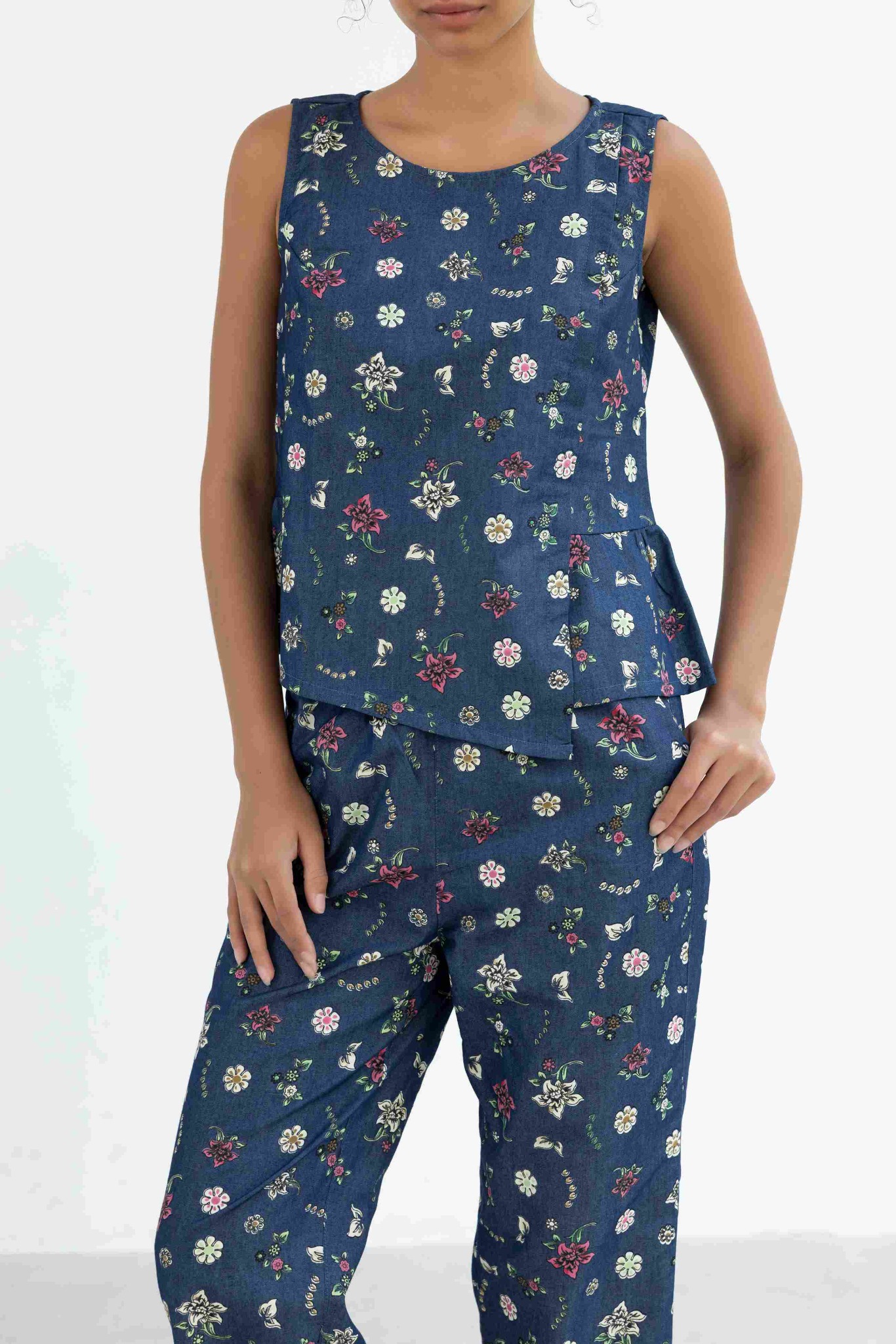Đồ bộ dài không tay thiết kế vạt xéo hoa lily Nani Store là thiết kế độc quyền, form dáng chuẩn, không đụng hàng. Đồ bộ mặc nhà thiết kế tiện lợi 2 trong 1, vừa mặc nhà, vừa dạo phố. Vải cotton giả jeans (mềm - mát - thấm hút mồ hôi). Phom giấu bụng rất tốt. Đủ size từ 43-75kg
