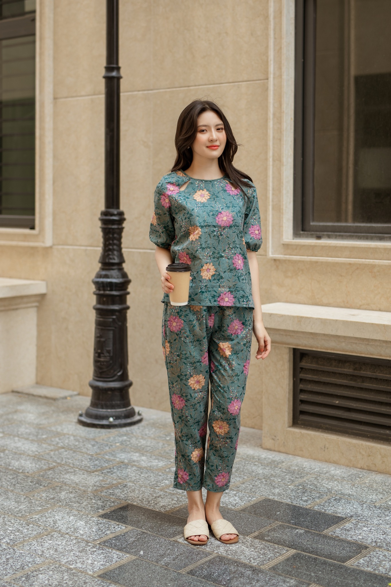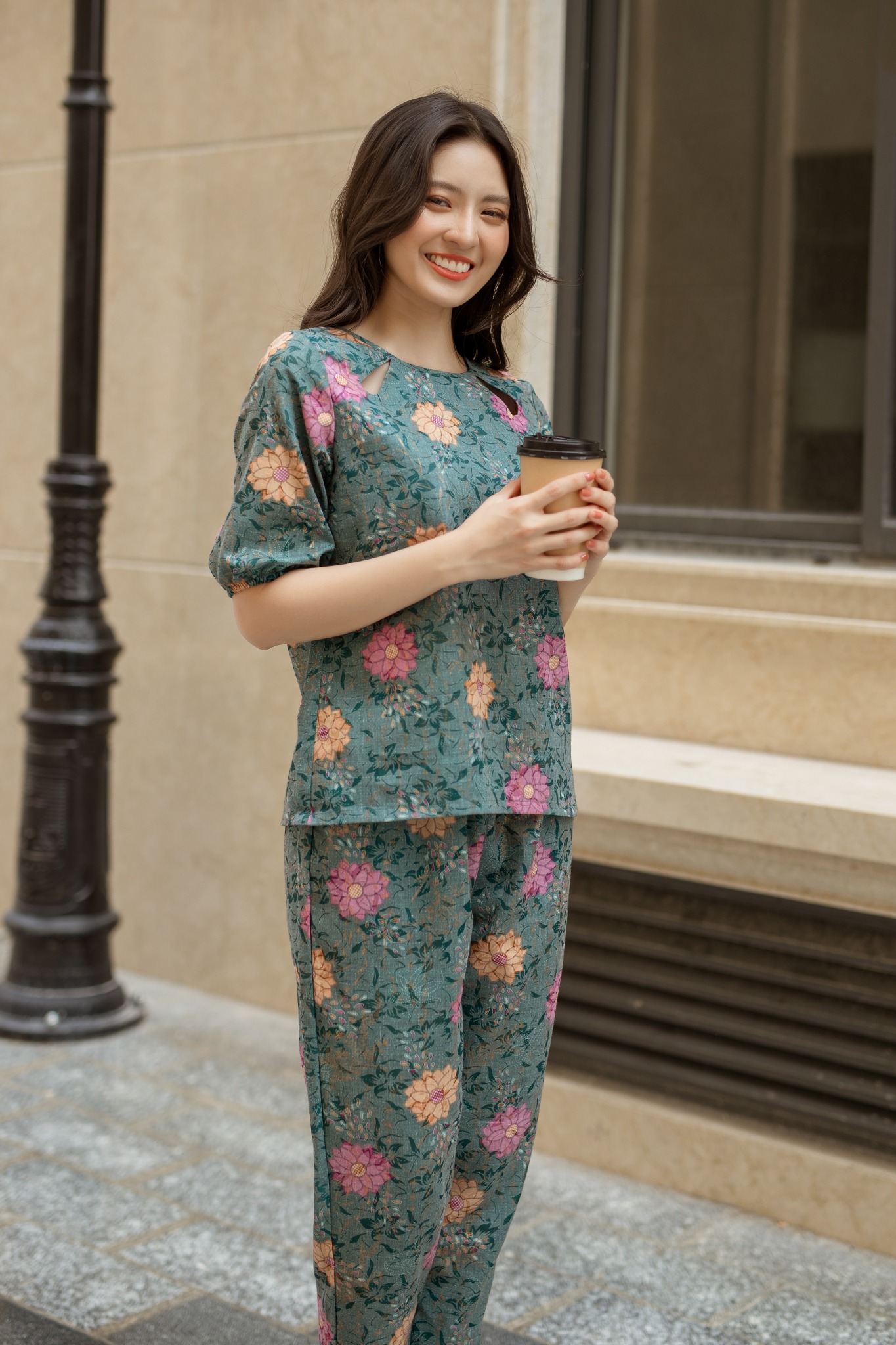 1. Đặc điểm nổi bật Đồ bộ dài thiết kế cổ giọt nước hoa sen
