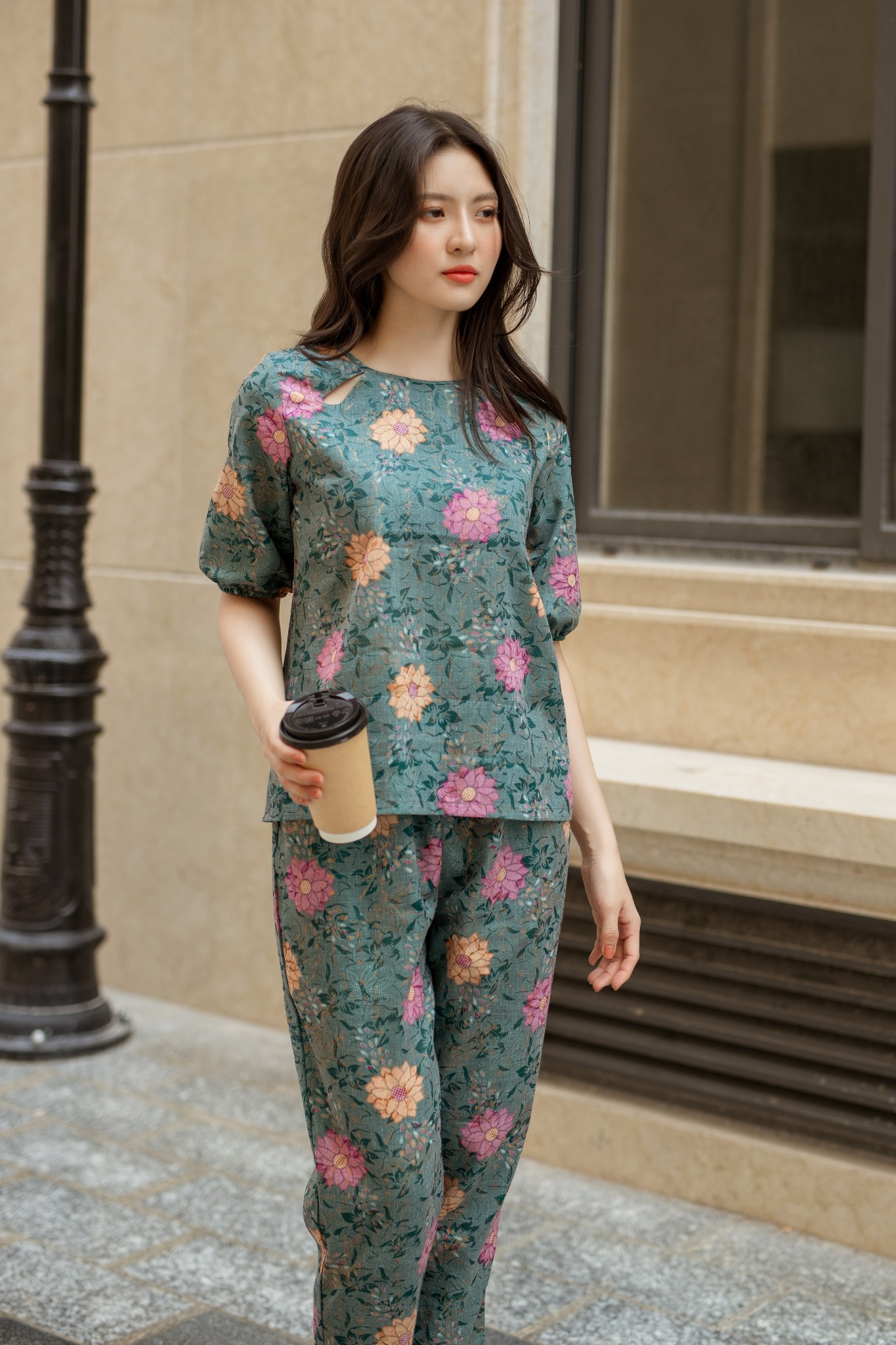 2. Mô tả chi tiết Đồ bộ dài thiết kế cổ giọt nước hoa sen