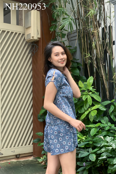 Bộ đùi có tay đan dây Cúc họa mi Nani Store là thiết kế độc quyền, form dáng chuẩn, không đụng hàng. Đồ bộ thiết kế tiện lợi 2 trong 1, vừa mặc nhà, vừa dạo phố. Vải cotton giả jeans giặt máy thoải mái, ít nhăn, thích hợp cho các chị ngại ủi. Phom giấu bụng rất tốt, vải mặc nhà không cần mặc áo bra. Đủ size từ 40-75 kg