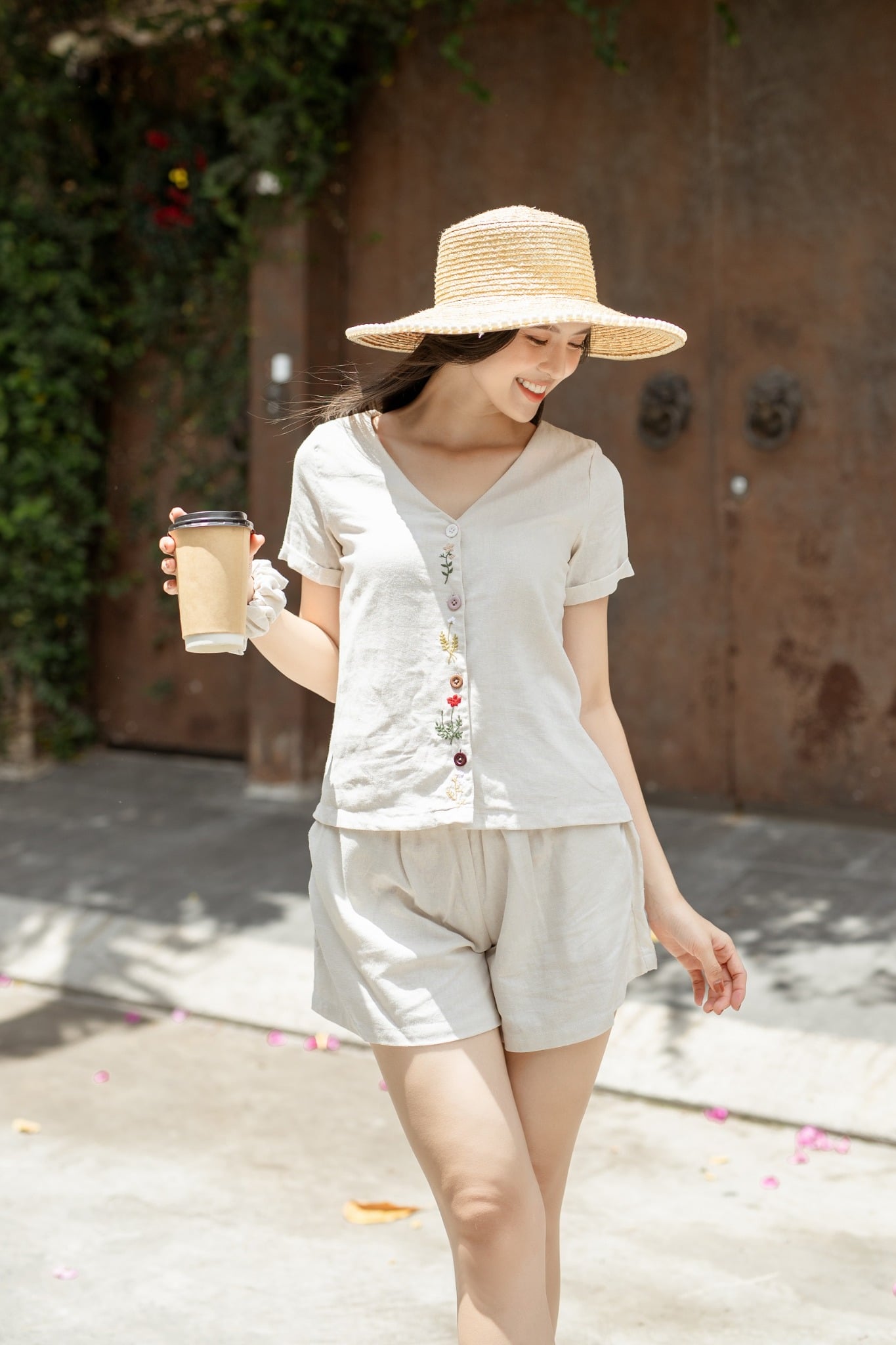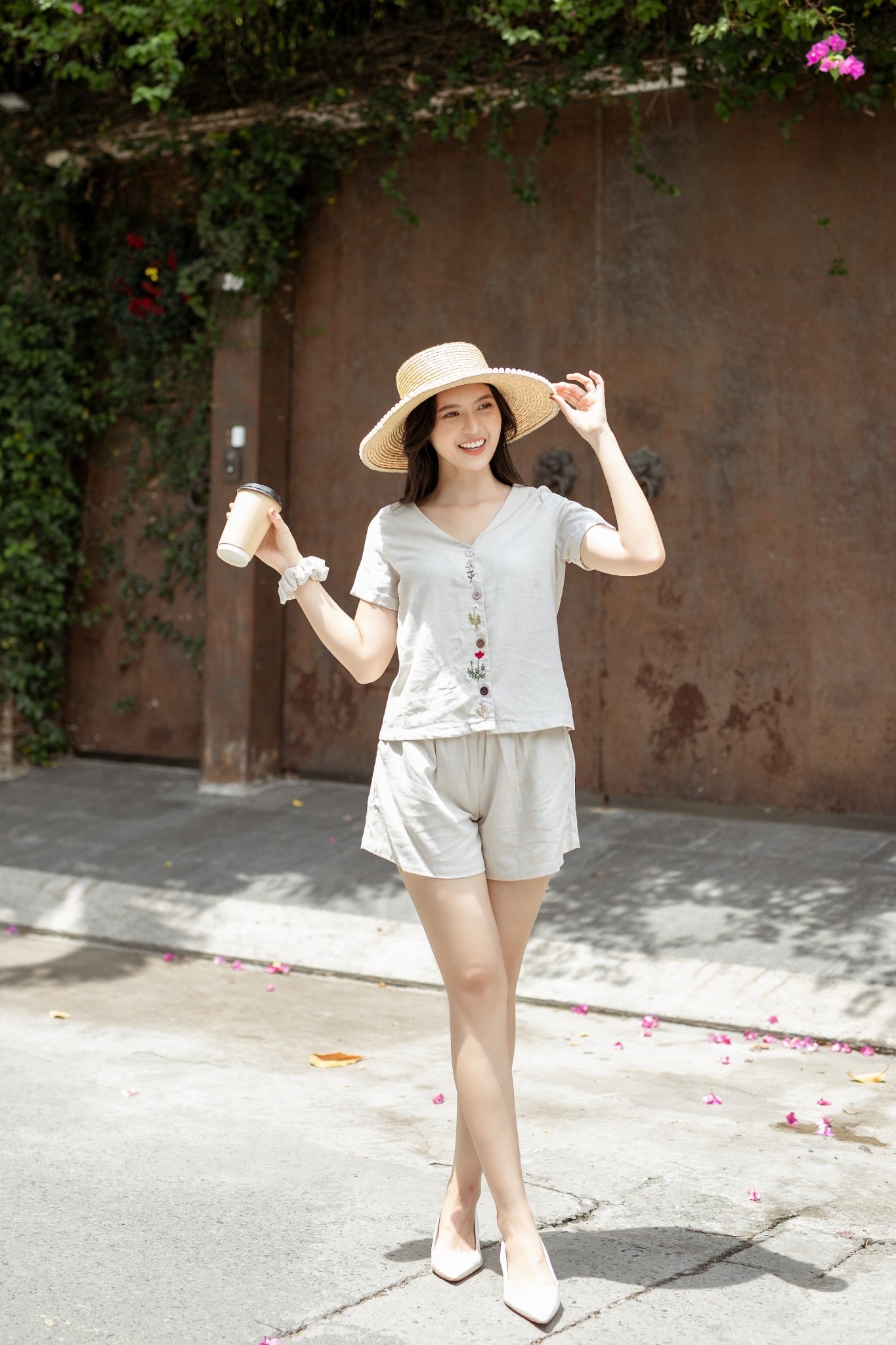 Đồ bộ đùi có tay nút nhiều màu trắng kem thêu hoa Nani Store là thiết kế độc quyền, form dáng chuẩn, không đụng hàng. Đồ bộ mặc nhà thiết kế tiện lợi 2 trong 1, vừa mặc nhà, vừa dạo phố. Vải linen , ít nhăn, thích hợp cho các chị ngại ủi. Phom giấu bụng rất tốt, vải mặc nhà không cần mặc áo bra. Đủ size từ 43-75kg