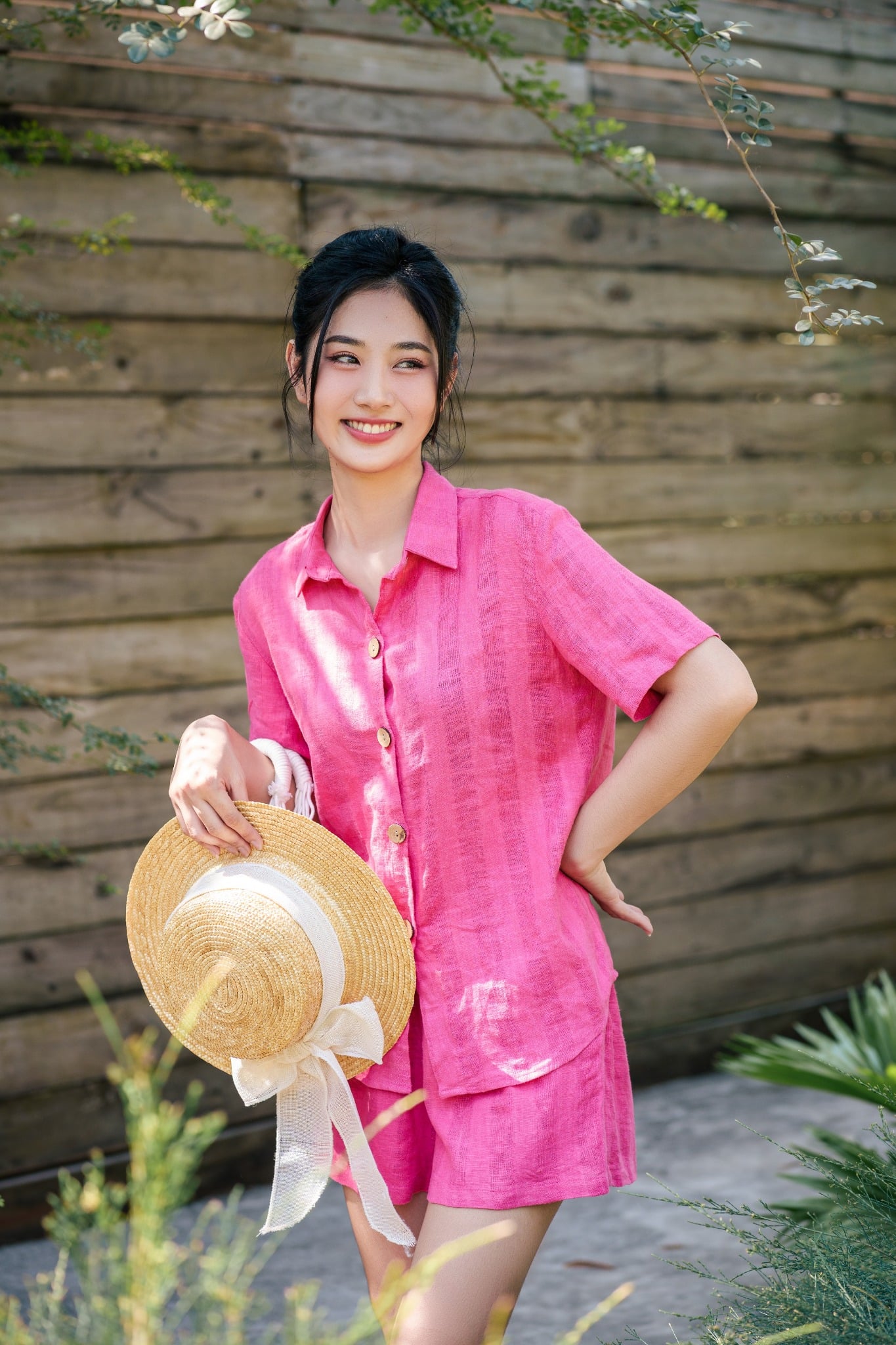 2. Mô tả chi tiết Đồ bộ đùi có tay sơ mi sọc hồng