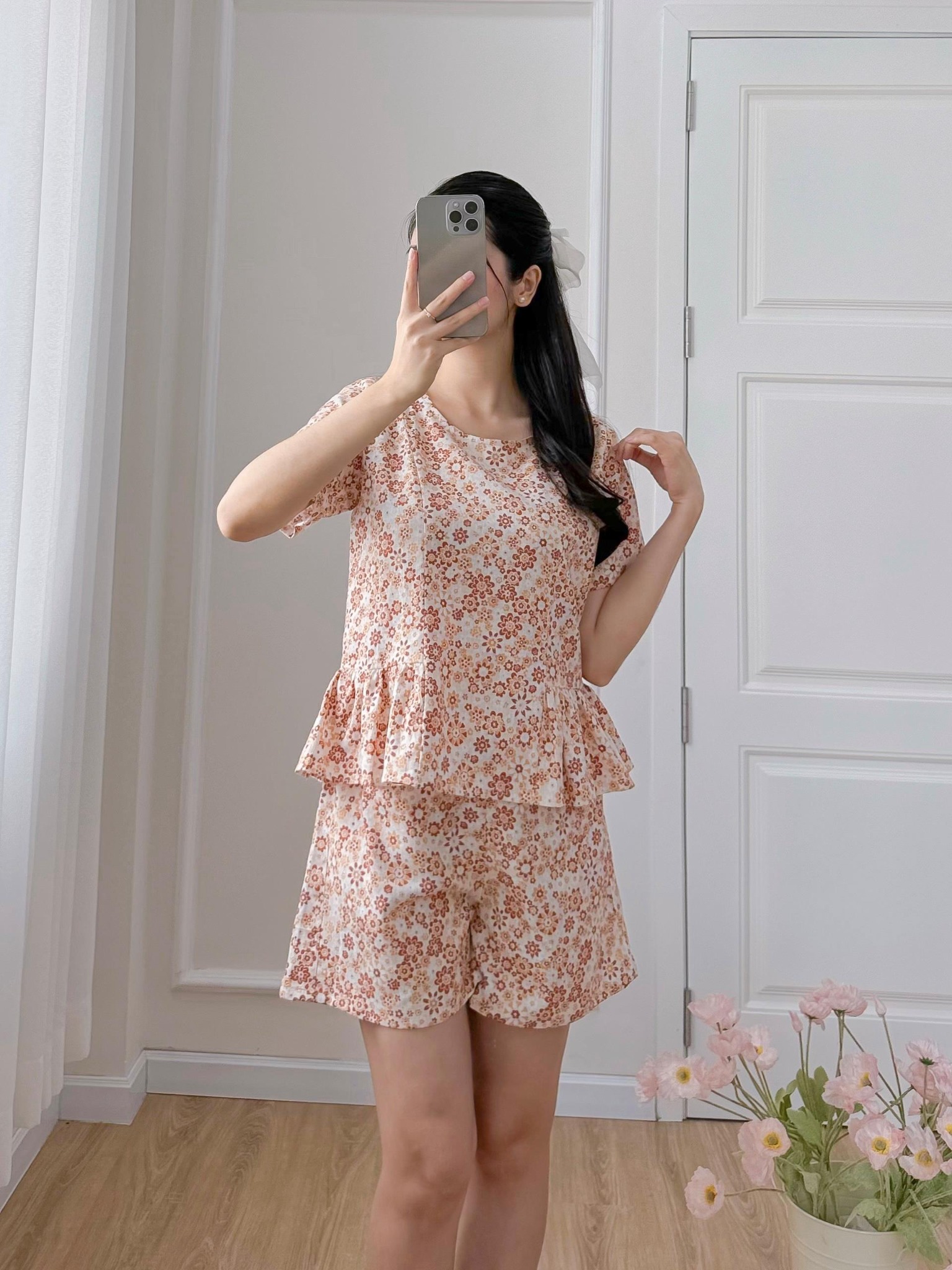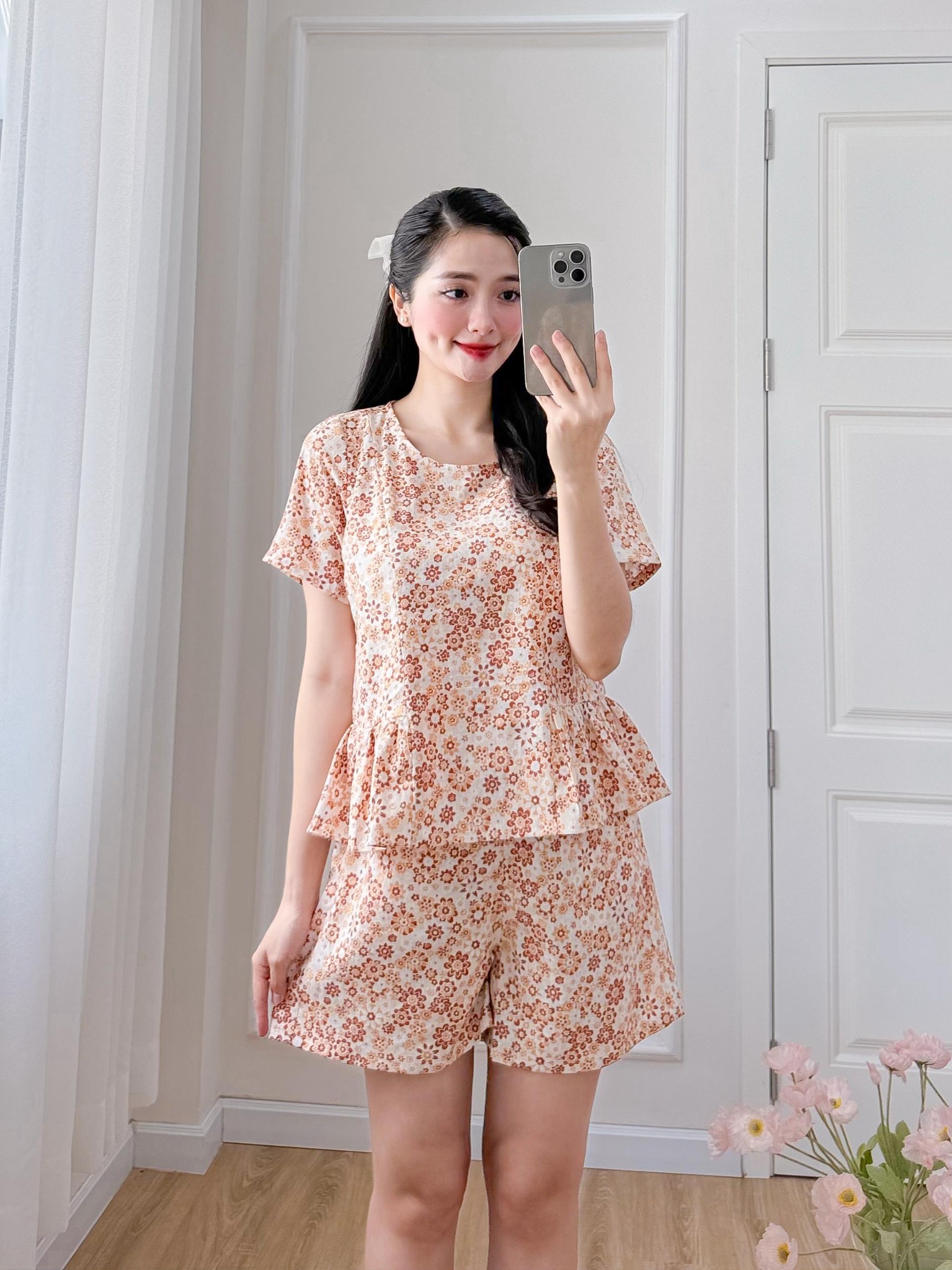Đồ bộ đùi nhún bèo có tay hoa nâu Nani Store là thiết kế độc quyền, form dáng chuẩn, không đụng hàng. Đồ bộ mặc nhà thiết kế tiện lợi 2 trong 1, vừa mặc nhà, vừa dạo phố. Vải linen, ít nhăn, thích hợp cho các chị ngại ủi. Phom giấu bụng rất tốt, vải mặc nhà không cần mặc áo bra. Đủ size từ 43-75kg