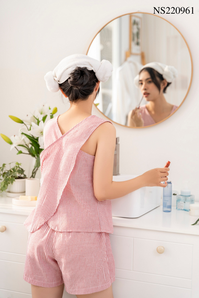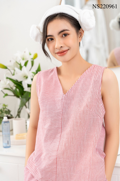 2. Mô tả chi tiết Đồ bộ đùi không tay sọc đỏ vạt chéo sau lưng