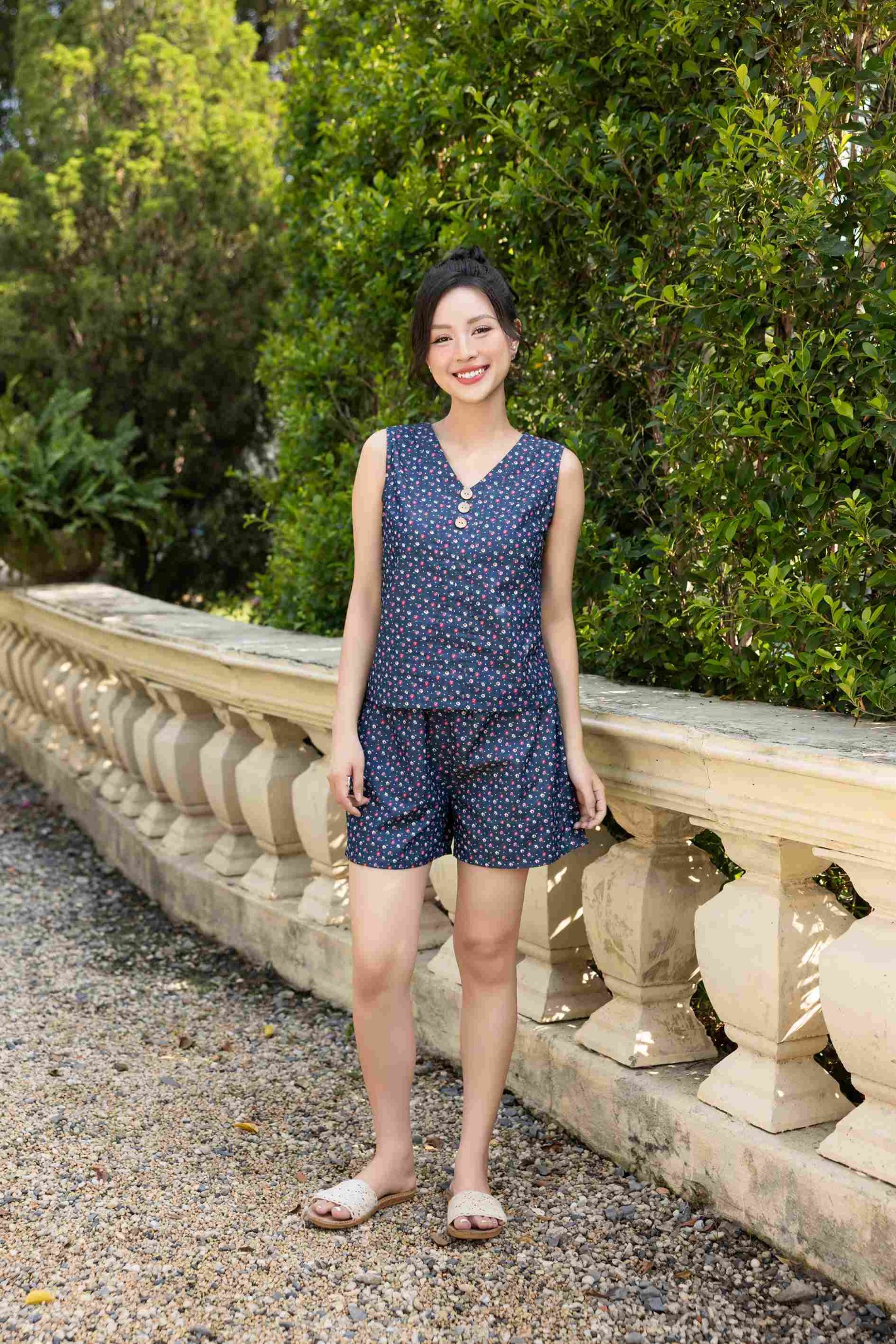 2. Mô tả chi tiết Đồ bộ đùi thiết kế 3 nút Hoa Hồng polkadot