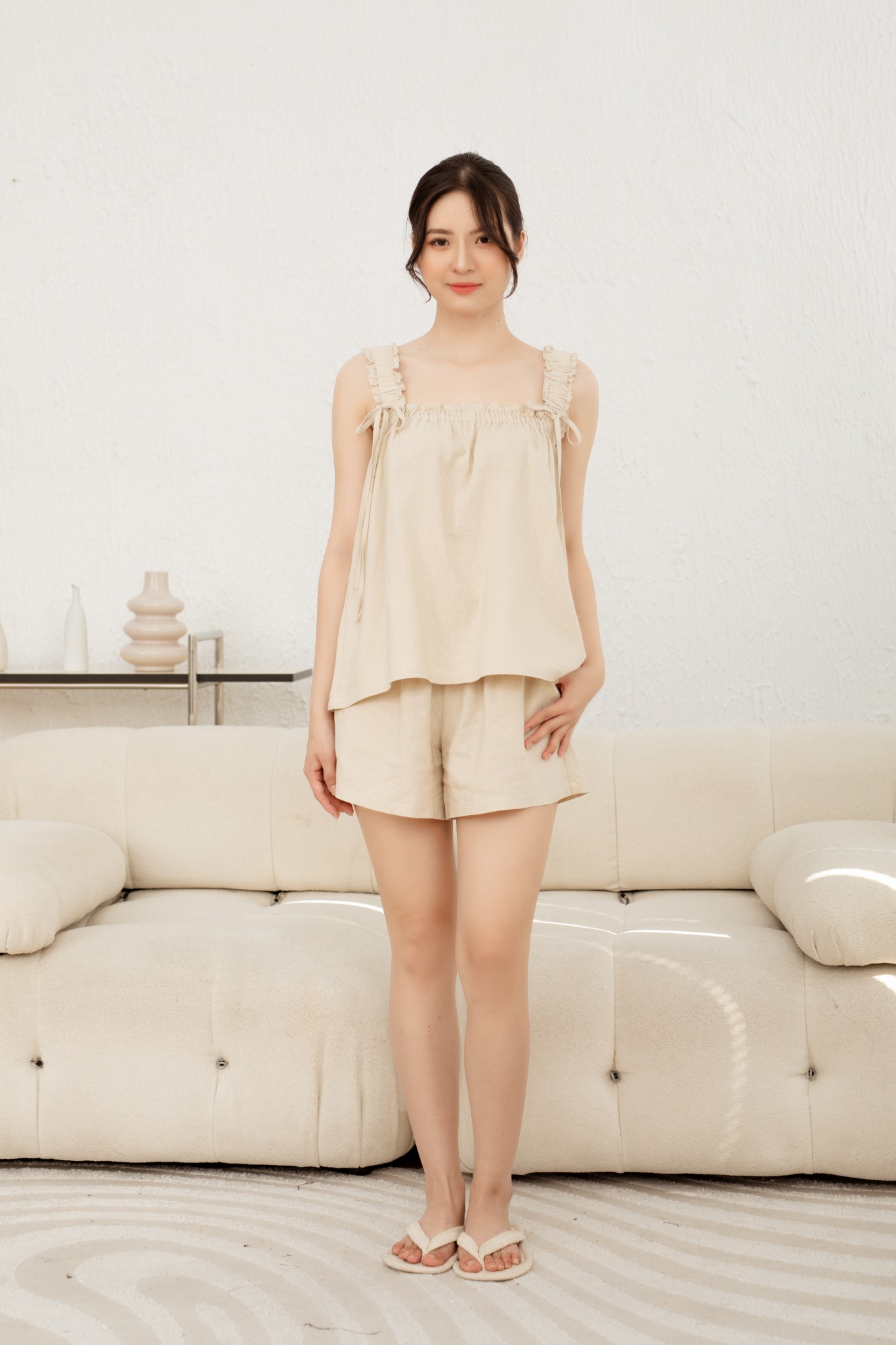 1. Đặc điểm nổi bật Đồ bộ đùi thiết kế baby doll 2 dây kem