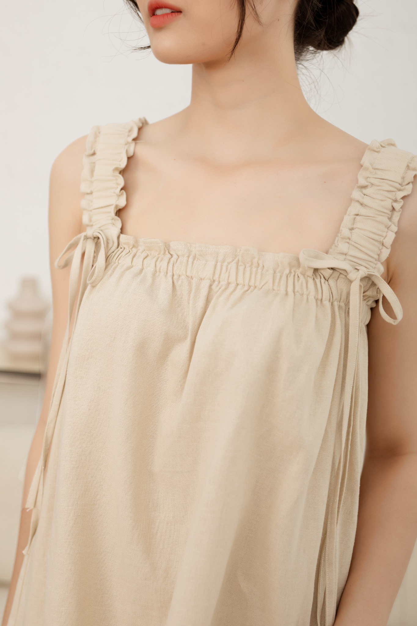 2. Mô tả chi tiết Đồ bộ đùi thiết kế baby doll 2 dây kem