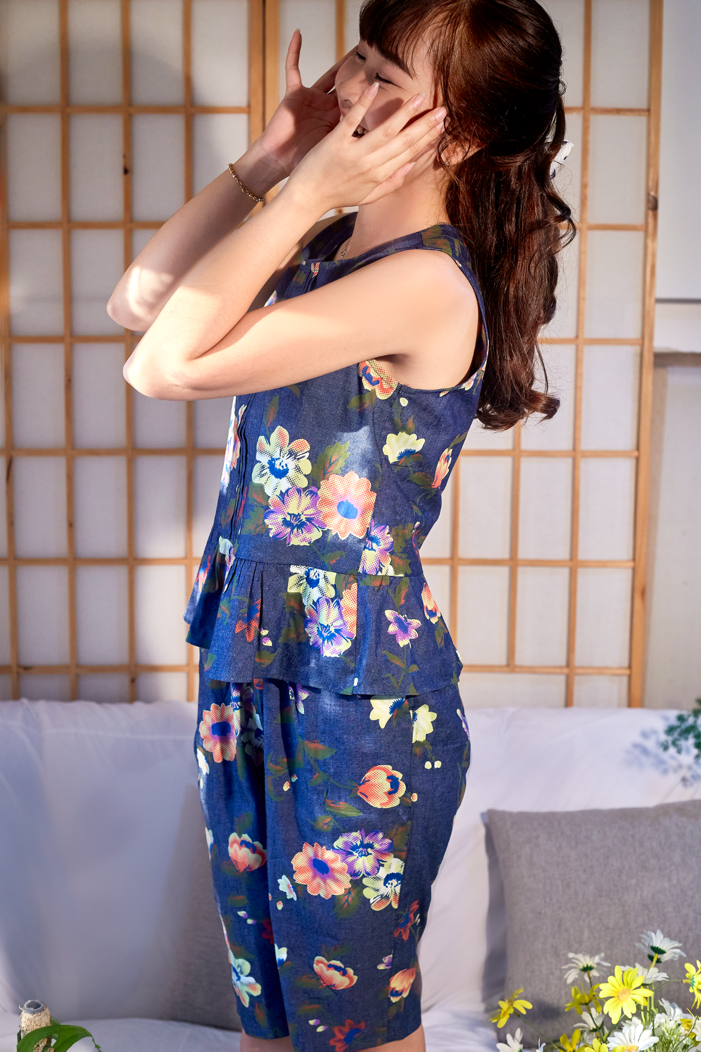 Đồ bộ lửng không tay xếp ly hoa cát tường Nani Store là thiết kế độc quyền, form dáng chuẩn, không đụng hàng. Đồ bộ mặc nhà thiết kế tiện lợi 2 trong 1, vừa mặc nhà, vừa dạo phố. Vải denim giặt máy thoải mái, ít nhăn, thích hợp cho các chị ngại ủi. Phom giấu bụng rất tốt, vải mặc nhà không cần mặc áo bra. Đủ size từ 43-75kg.