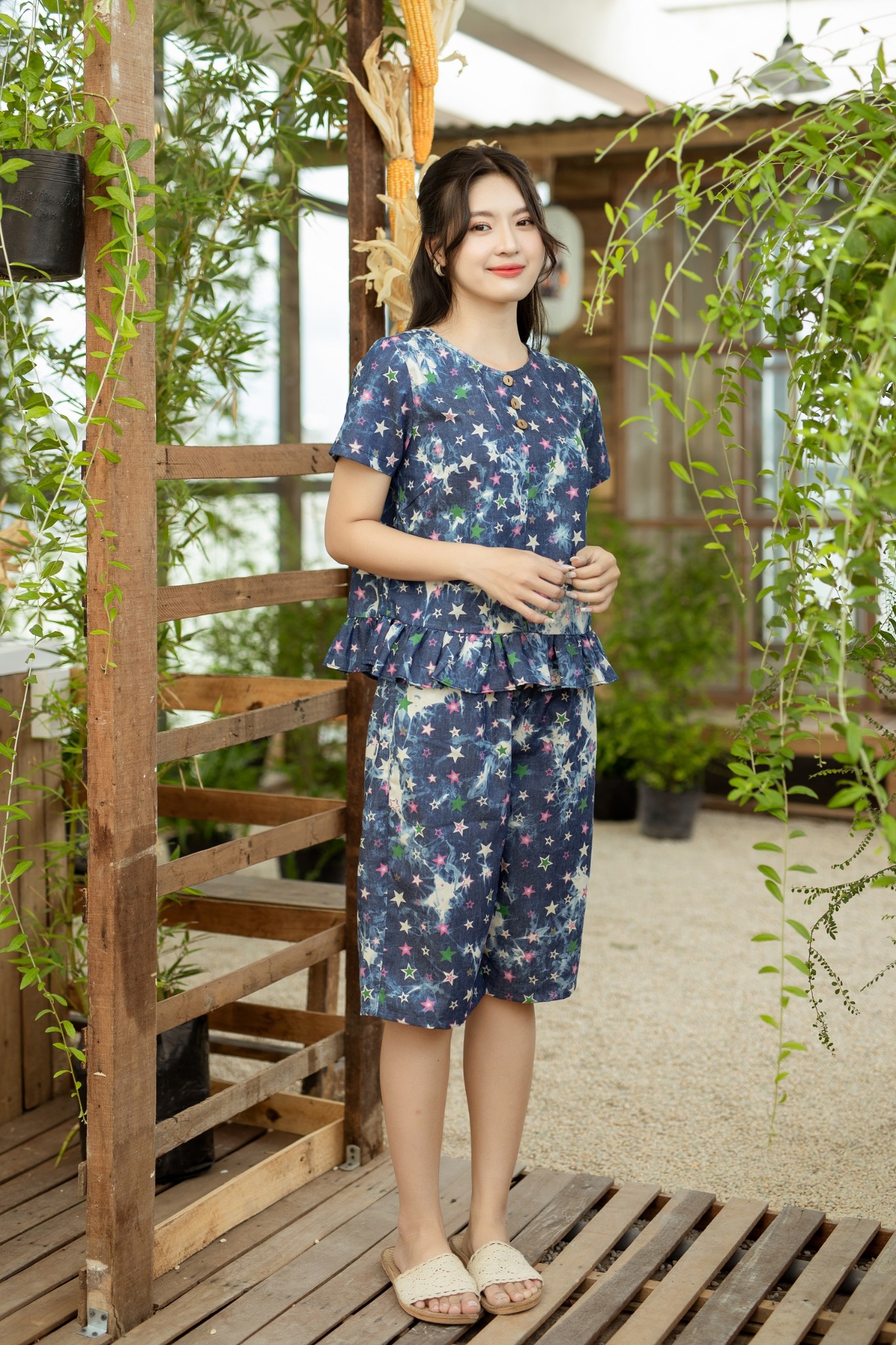 2. Mô tả chi tiết Đồ bộ lửng thiết kế có tay nhún bèo ngôi sao